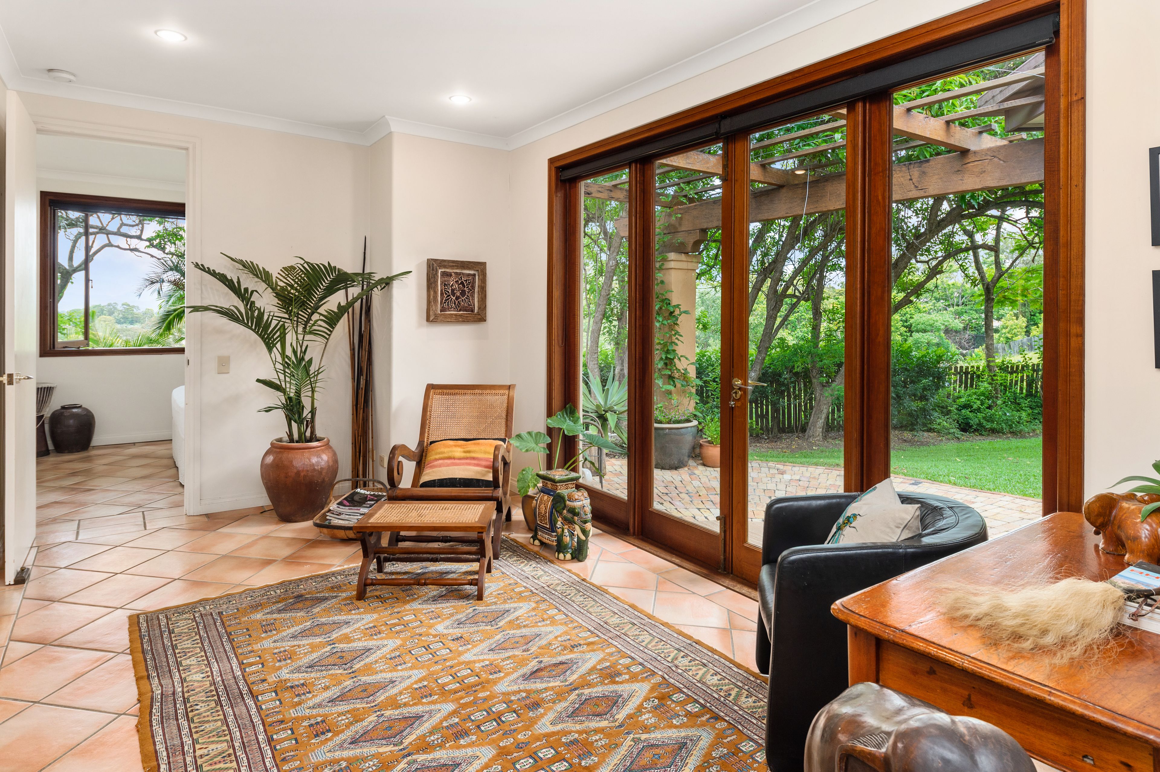 A magical place that feels far removed from the urban sprawl, explore the gently undulating, manicured grounds punctuated with majestic trees, with a waterfall and natural spring adding to its tranquil ambience. Rising up from within this canopy of greenery is a single level home with Spanish influences, warmed by West Australian Jarrah timber finishes throughout sourced from the old Expo 88 site. Relax in the lounge room beneath an exposed beam ceiling, with a fireplace for cooler months, while a sunroom is a cosy place to curl up with a good book. The kitchen offers ample storage, with an archway leading to a dining room looking out onto the glorious gardens.
