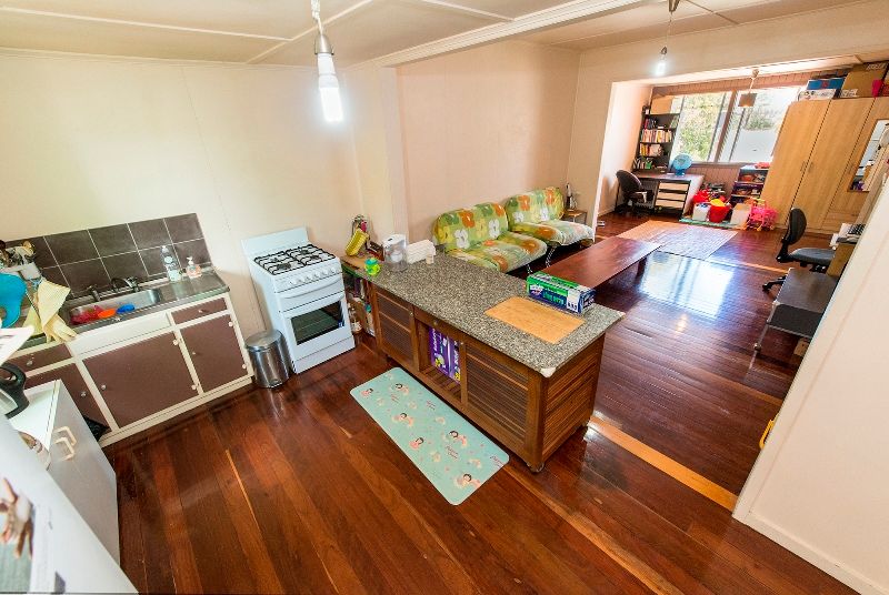 Open plan kitchen to the lounge and dining with a box air-conditioner