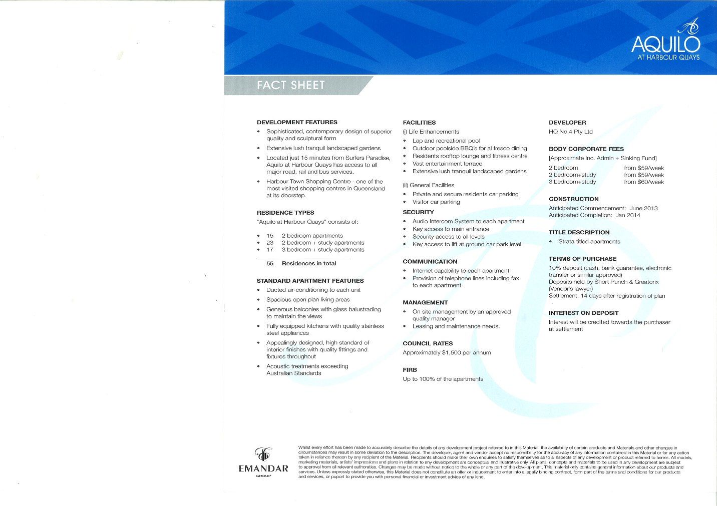 - 2 Bedroom - 2+ Study & 3+ Study Apartments - Ducted a/c Reverse Heating & Cooling - Lap Pool - BBQ area - Fitness Center - On site Managers