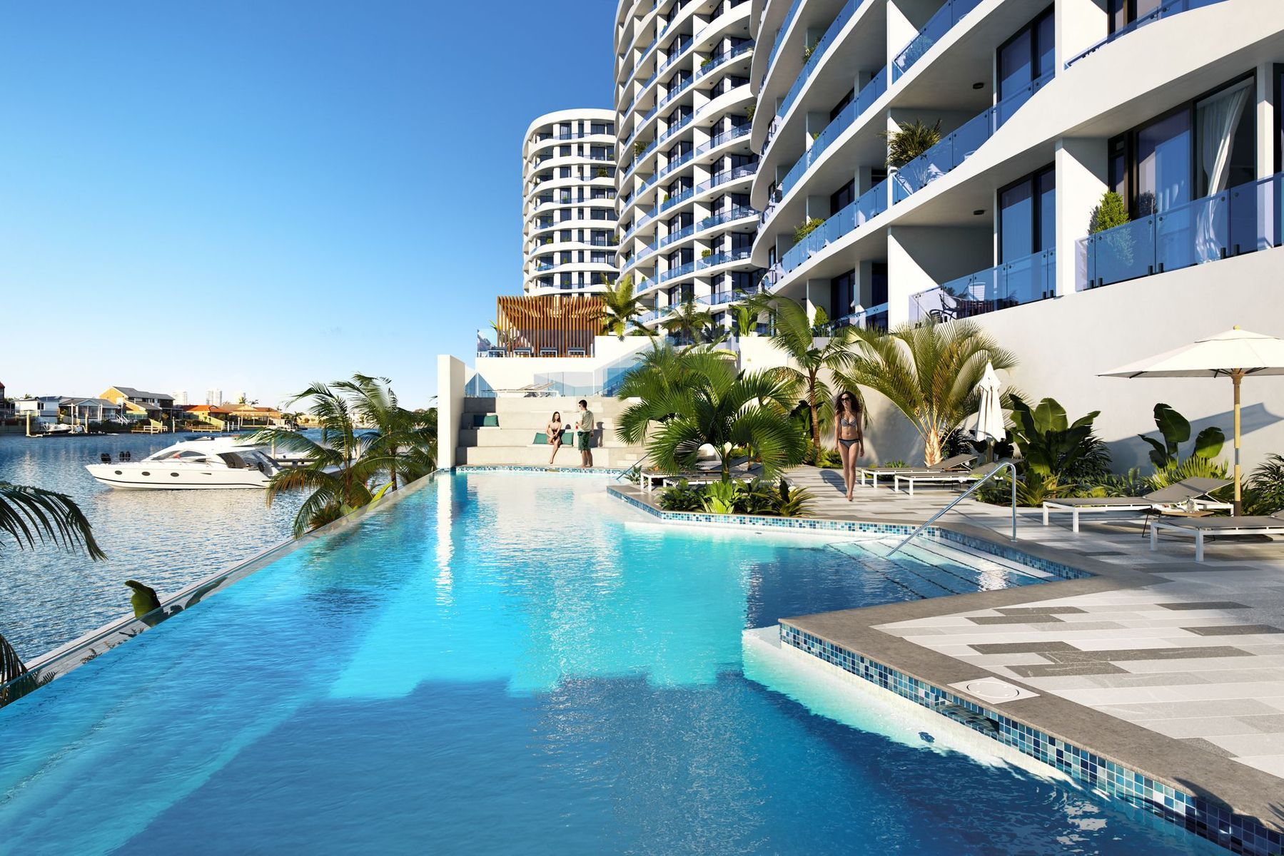 There are many features from 360 metres of Canal frontage private waterfront boardwalks some marina berths for purchase and including indoor heated lap pool, gymnasium, pilates, massage and steam rooms, sauna, residents lounge, Gold class 16-seater theatre, library, games room with pool table.