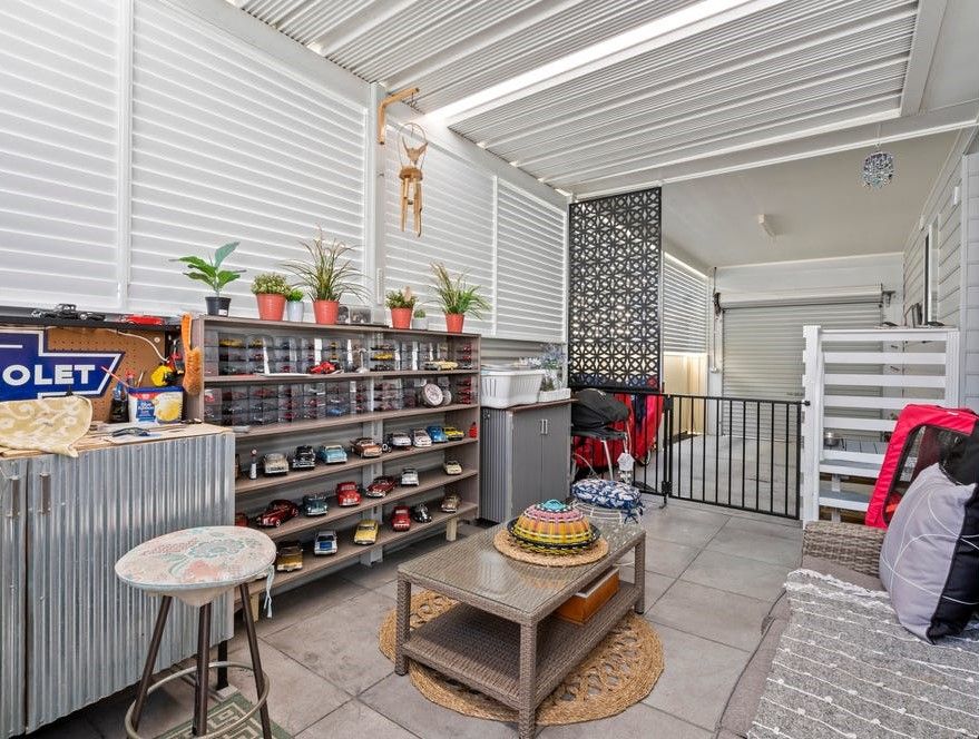 For the car there is a remote garage. Beyond the garage is a covered and fully tiled patio outdoor area, fully screened off with plantation shutters to be weatherproof and private for alfresco entertaining with family and friends. The shed has power and lighting added for a workshop.