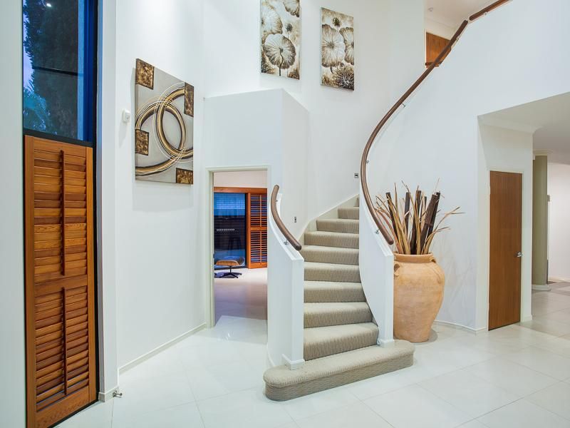 *Stunning glass atrium entry of grand proportions *Multiple entertaining areas both inside and out perfect for formal and casual soirees *Elaborate master suite with ensuite and private balcony, all bedrooms are spacious with built in wardrobes *Expansive kitchen complete with stone bench tops and European appliances, the hub of the home *Outdoor built in kitchen overlooking the pool and canal *3 well appointed bathrooms positioned service both levels *21m quay-line plus double and single jetski pontoons *Sparkling 3 tier, infinity edge resort-style pool *Luxurious, gas-heated spa, large enough to fit the whole party *Three wall mounted flat screen TV's plus surround sound *Designer landscaping with several water features and lighting