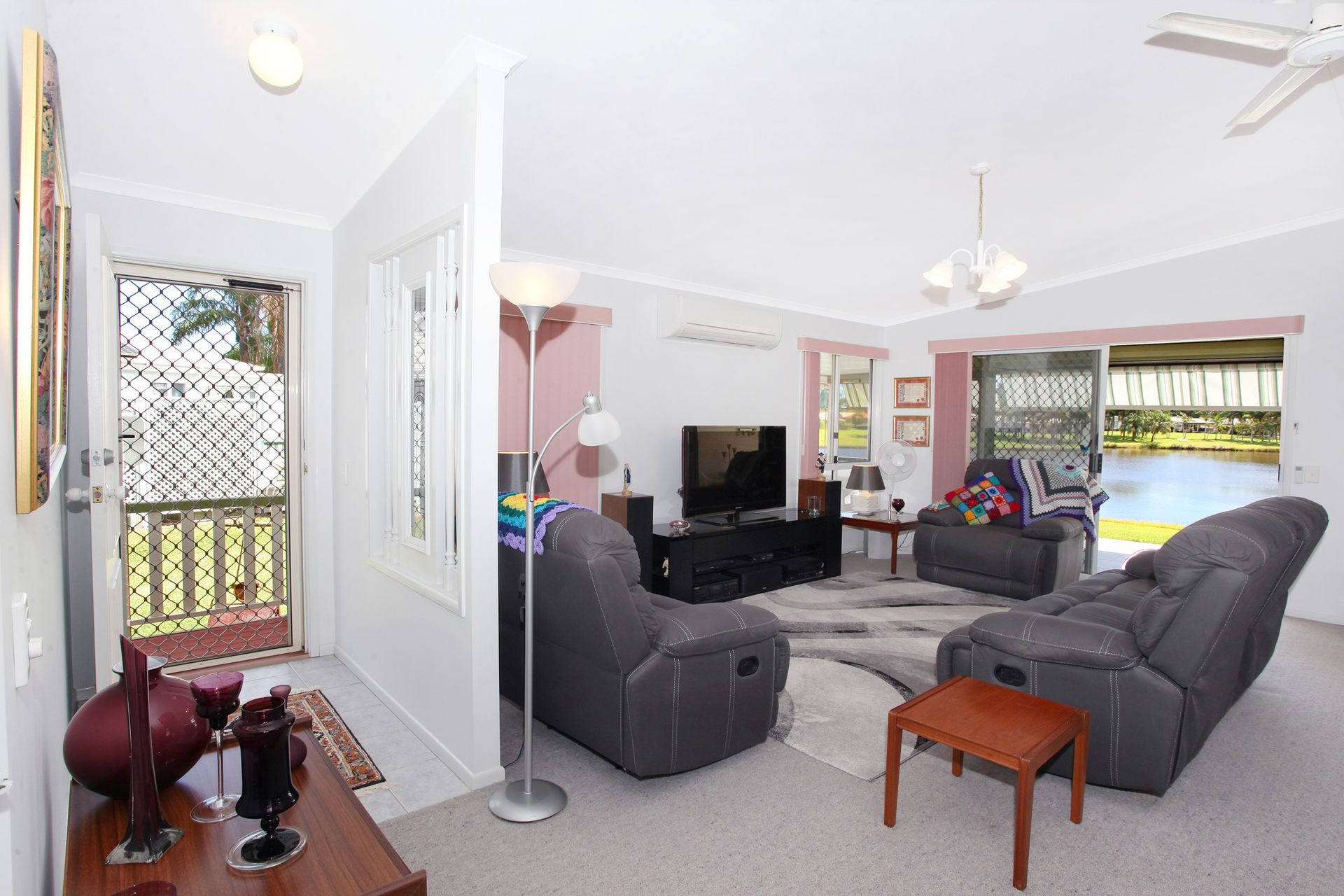• 2 large bedrooms, both with air conditioning • Large bathroom • Separate toilet • Open lounge/dining, fully air conditioned. • Well-appointed kitchen overlooking the lake • Separate laundry • Enclosed Verandah/Sunroom • Huge amount of storage • 2.8kw Solar and Hotwater