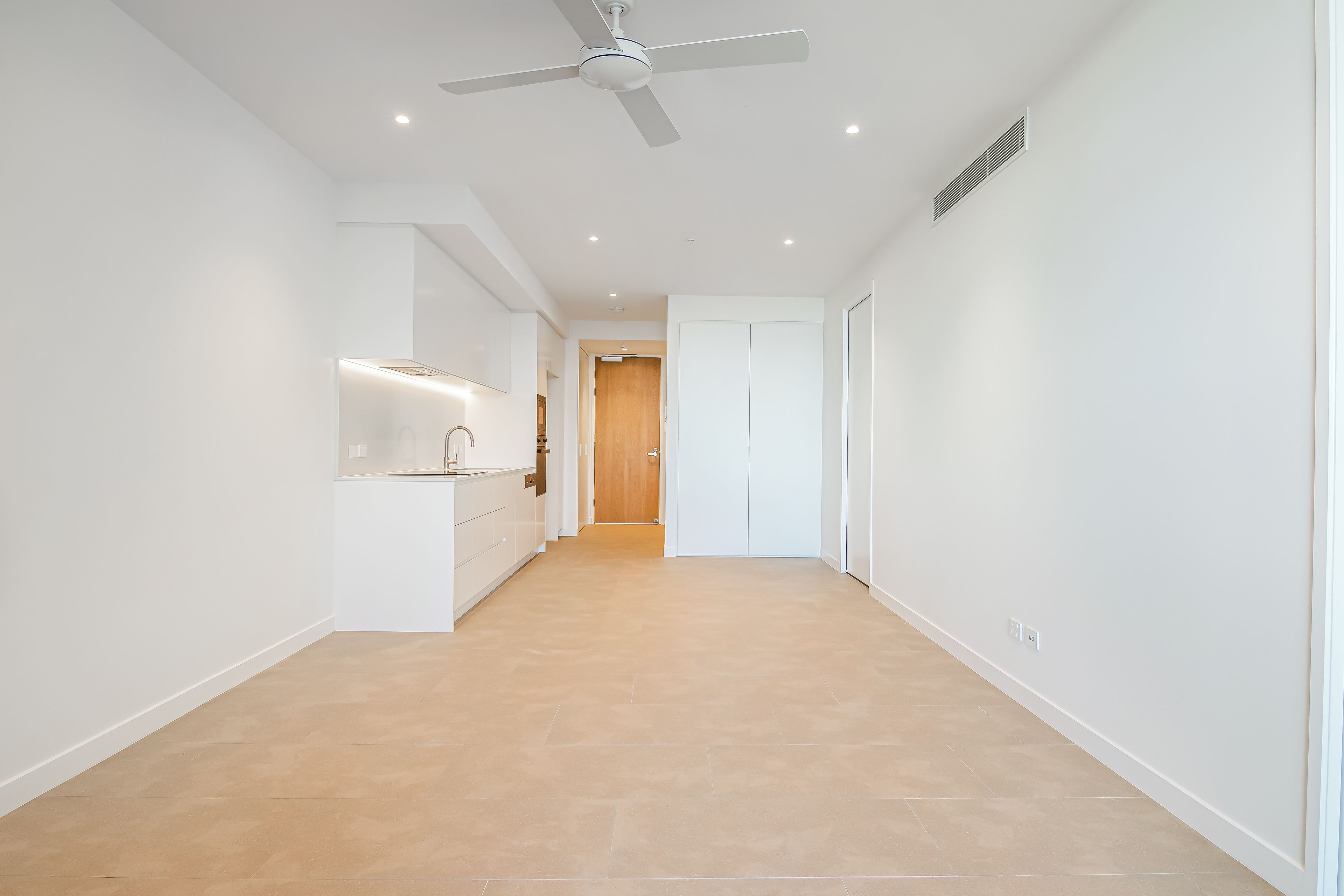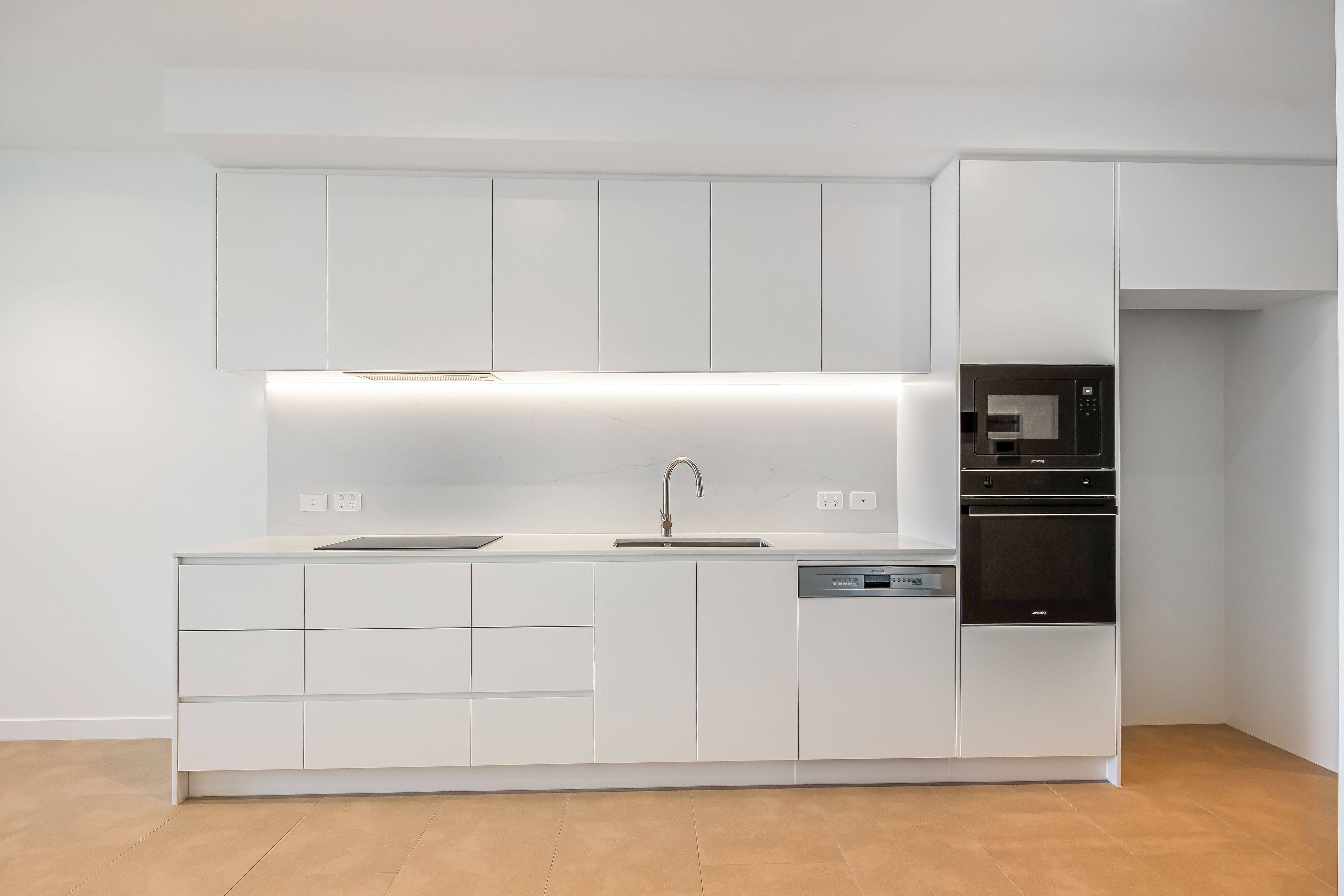 Stone tile flooring, stone benchtops and high quality smeg appliances. This unit is paired with a contemporary mix of textures and colours exclusively picked to create the interior of your beach side dreams.