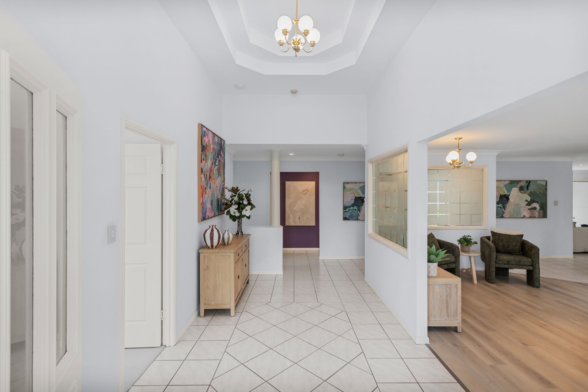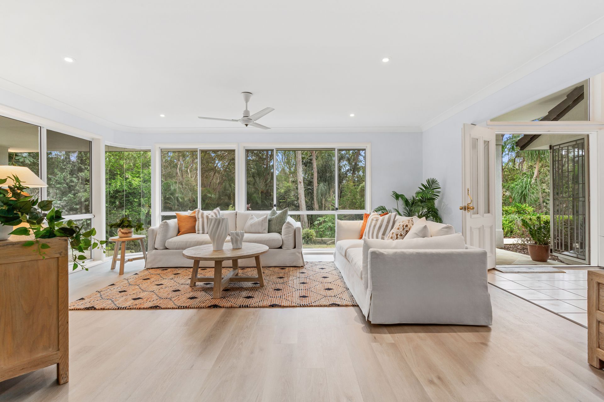 Behind a grand, statement entrance, the home unfolds with architectural confidence - floor-to-ceiling windows, and light-filled living zones that blur the line between indoors and out. A dedicated office complements four spacious bedrooms, while the outdoor spaces promise the ultimate retreat: a sparkling pool framed by lush greenery and a backdrop of whispering gum trees.