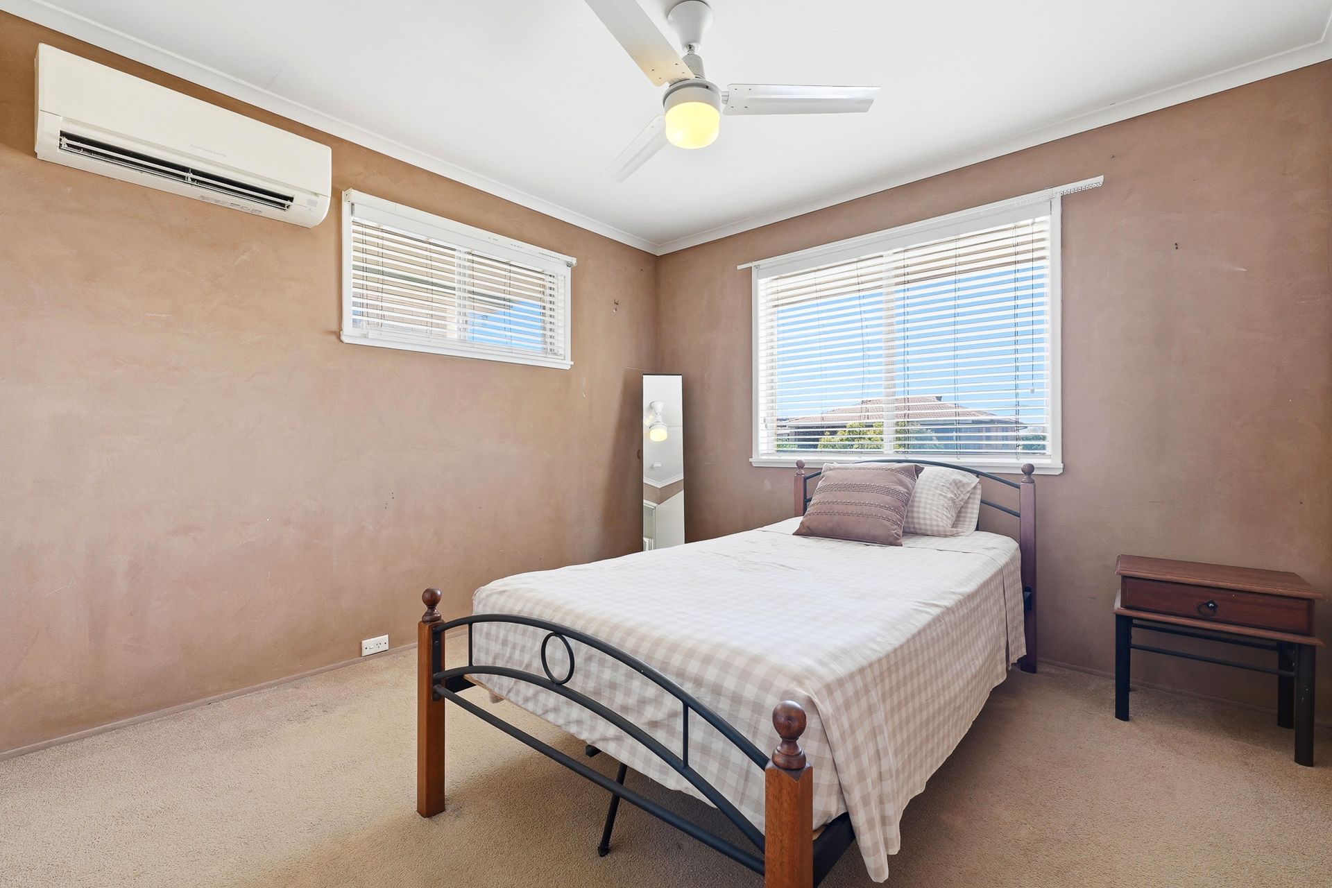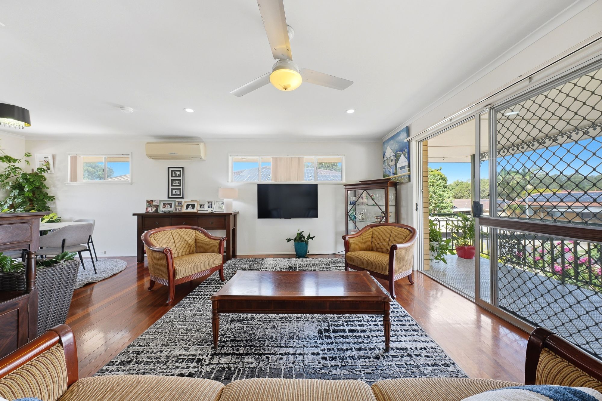 Upstairs, the home welcomes you with a spacious lounge and dining area, creating a warm and inviting hub for everyday family living. The well-appointed kitchen offers excellent functionality and storage, perfectly positioned to service the upper level. Sliding doors extend the living areas in both directions, opening to a balcony at the front of the home and a large entertaining deck at the rear, allowing you to enjoy elevated breezes and effortless indoor-outdoor living. The upper level is completed by three well-sized bedrooms, two featuring built-in robes and air conditioning, while all bedrooms are fitted with ceiling fans for year-round comfort. These rooms are serviced by a family bathroom with a separate toilet for added convenience.