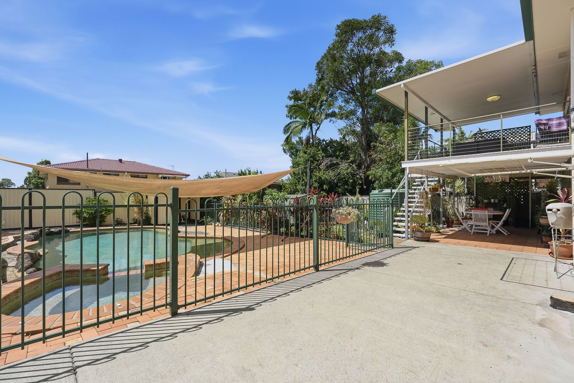 The outdoor areas are where this home truly shines. Beautifully landscaped gardens frame multiple outdoor entertaining zones, including a large concrete entertaining area ideal for gatherings with family and friends. At the centre of the backyard is a huge in-ground swimming pool complete with a relaxing jacuzzi, creating a private retreat designed for enjoying Queensland's outdoor lifestyle.