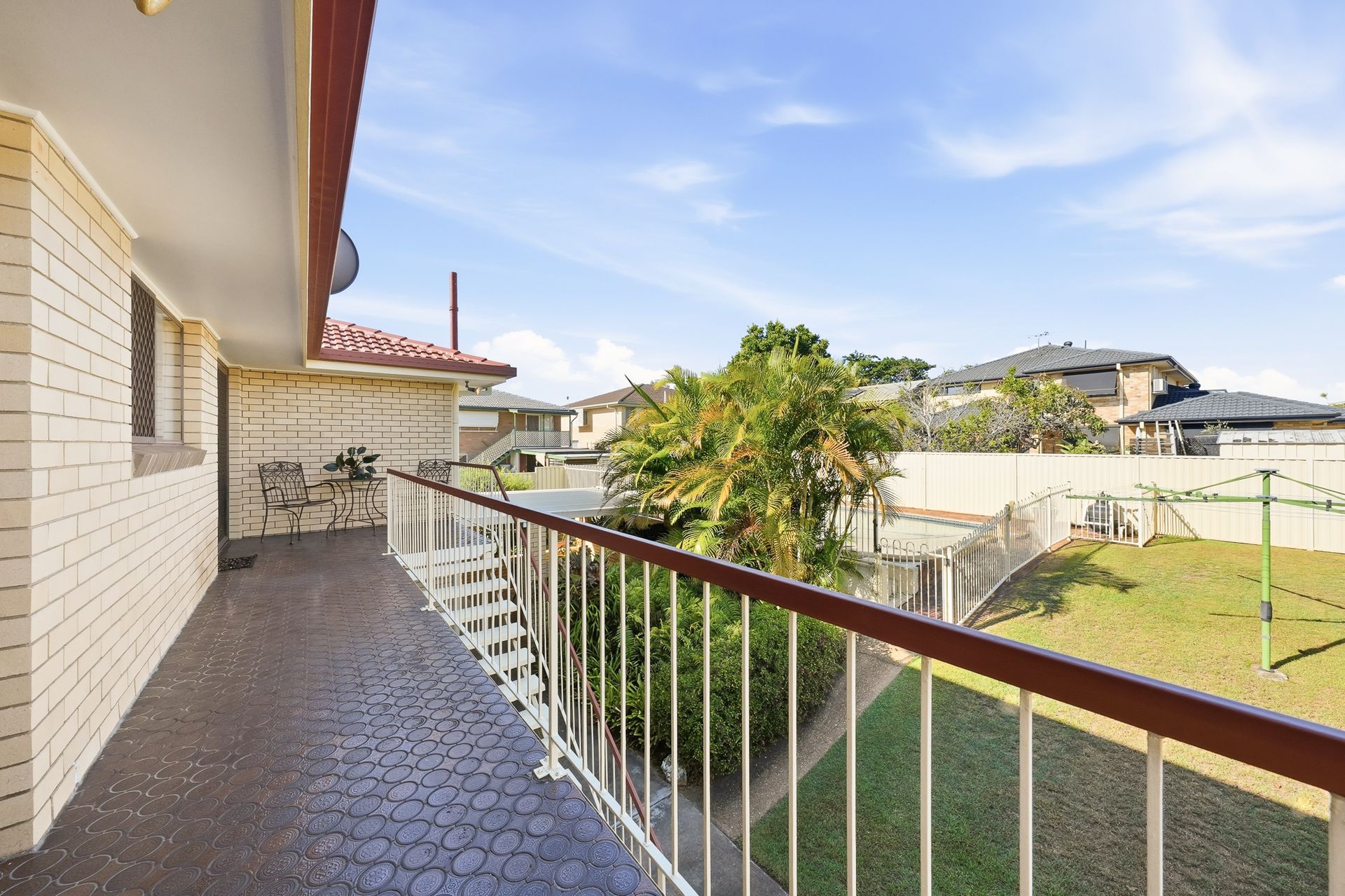 Property Features: • Elevated position capturing mountain views and breezes • Held by just two owners • Three bedrooms on upper level • Family bathroom with separate toilet upstairs • Spacious living area with air conditioning • Front balcony with elevated outlook • Rear balcony off kitchen/dining • Well-appointed kitchen with dishwasher • Downstairs rumpus room with wet bar • Multi-purpose room or home office • Second bathroom downstairs • Separate laundry and under stair storage • Covered outdoor entertaining area • Large in-ground swimming pool • Double remote garage with internal access • Security screens and curtains throughout • Beautifully manicured gardens with established rose bushes