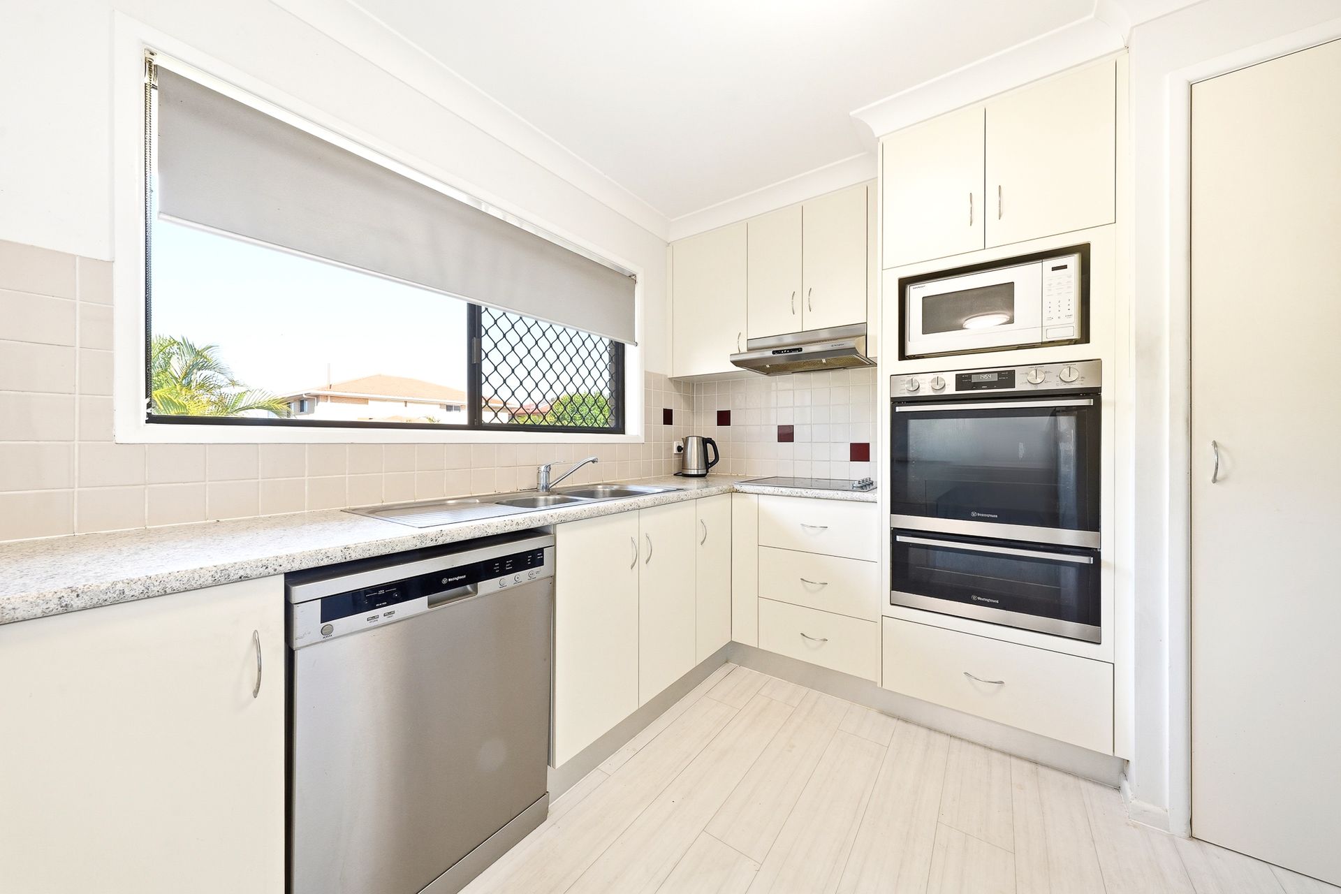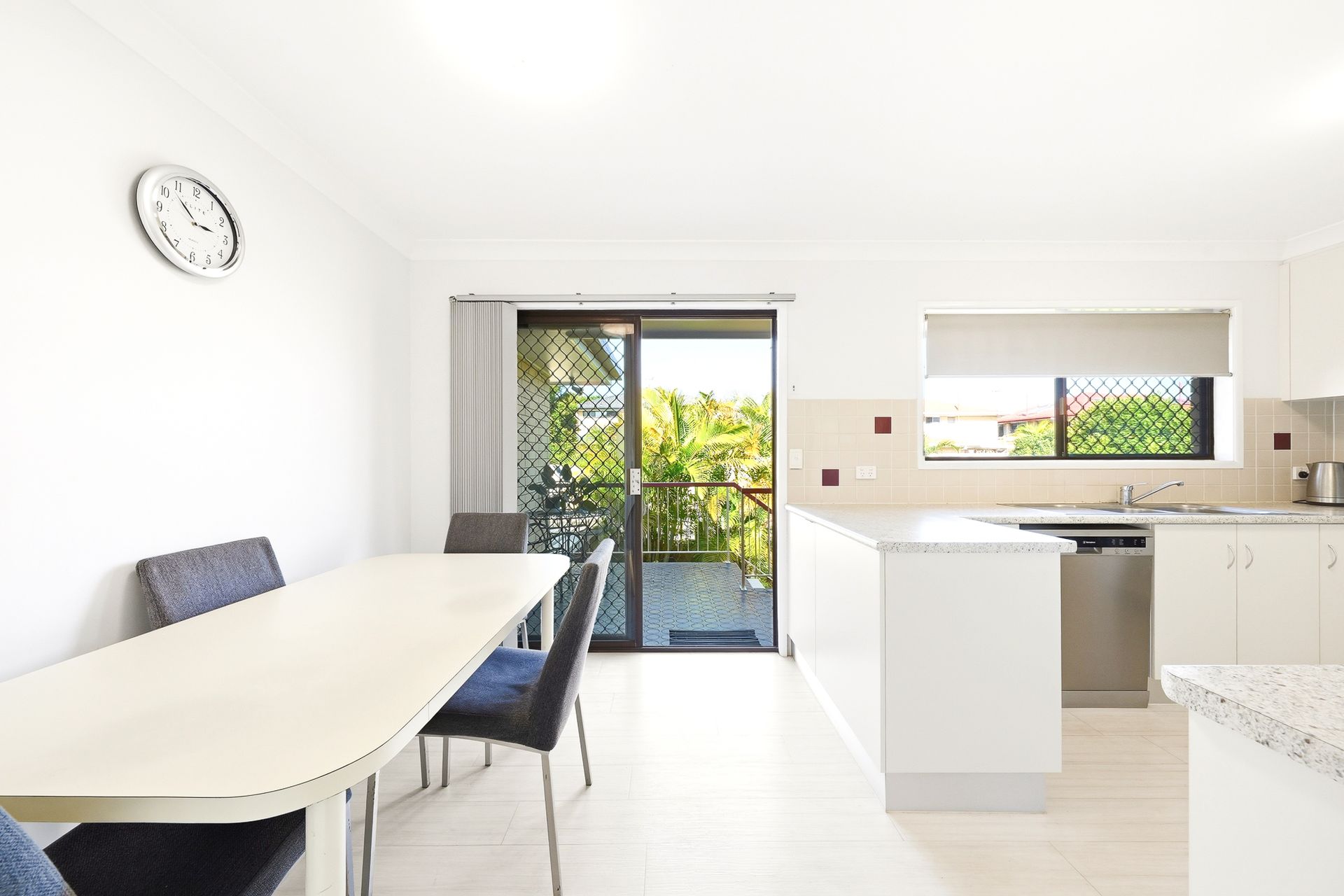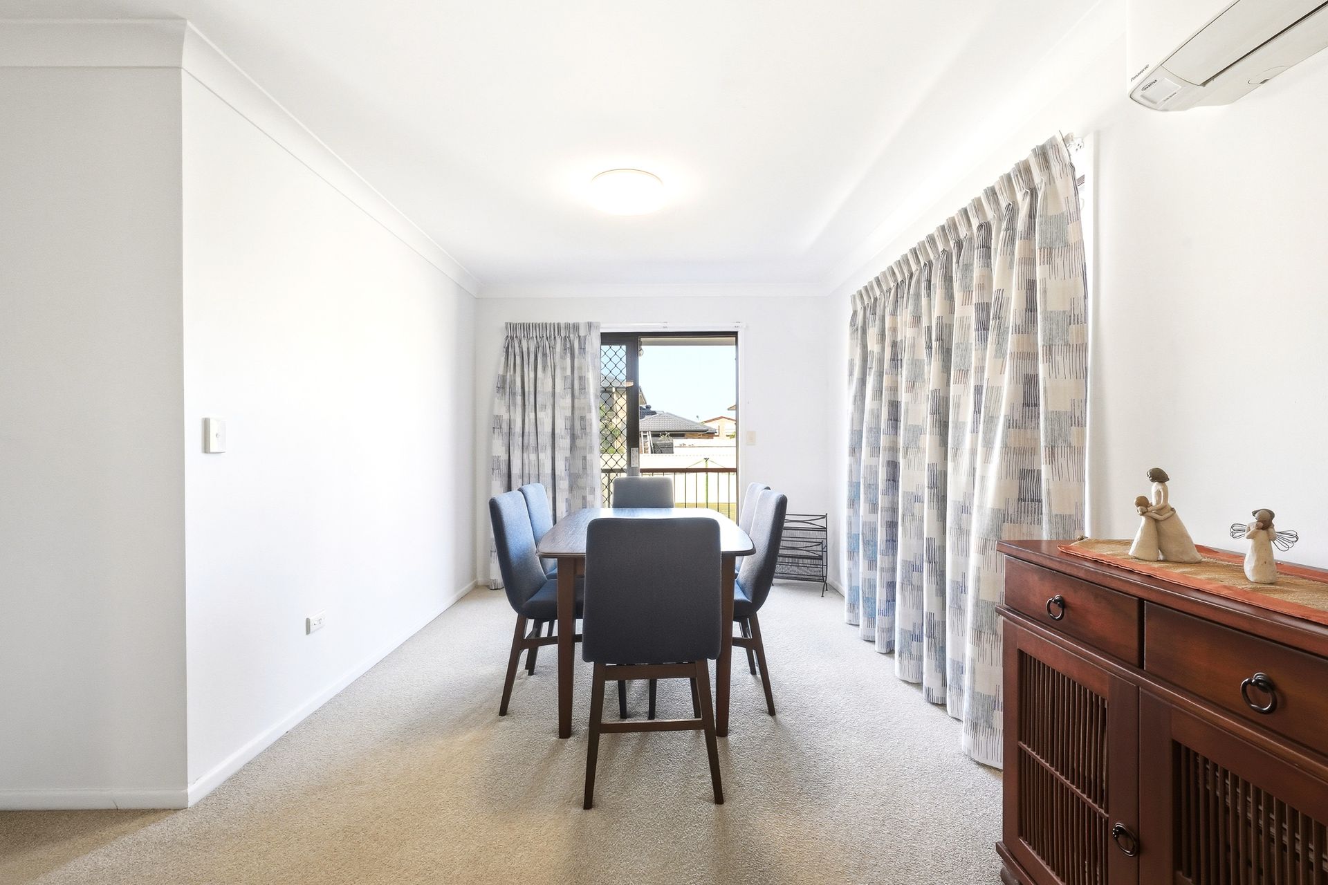 Upstairs, the home offers a spacious and light-filled living and dining area, complete with air conditioning and seamless access to the front balcony where you can take in the outlook towards the Mountains. The adjoining dining and kitchen area is well-positioned for everyday functionality, featuring a practical layout with ample bench space, electric cooktop, oven and dishwasher, making daily living and entertaining effortless. Sliding doors open to a rear balcony to further enhance indoor-outdoor flow, while ample storage throughout this level adds to the overall practicality of the home.
