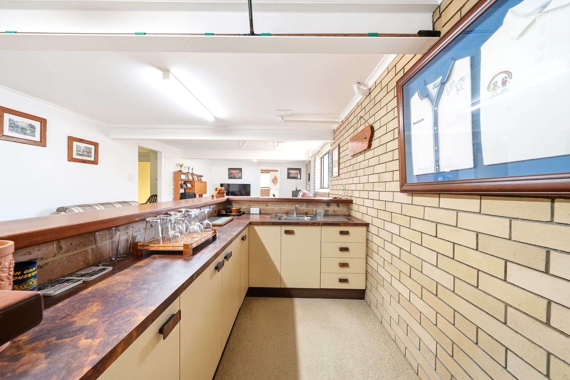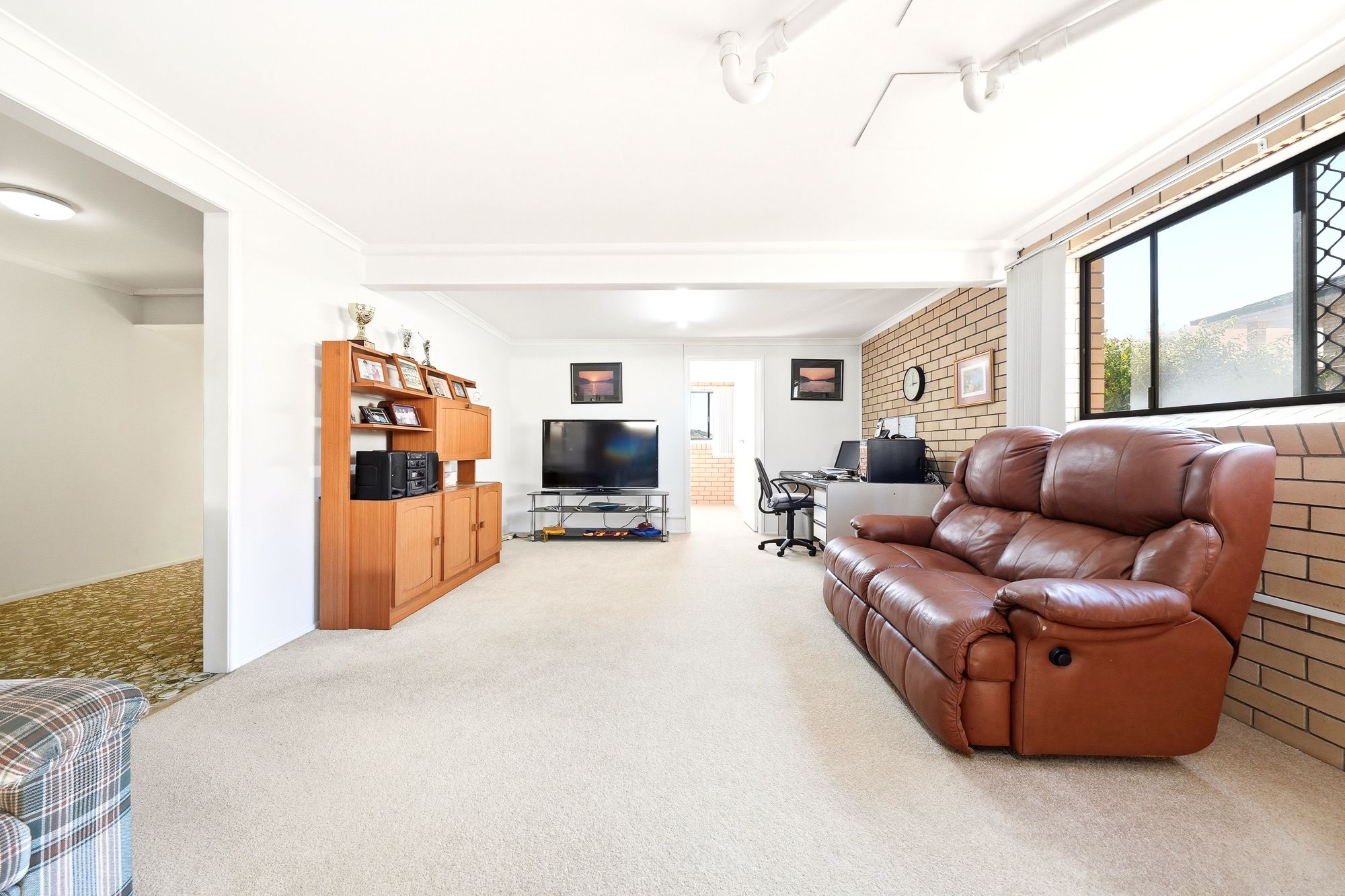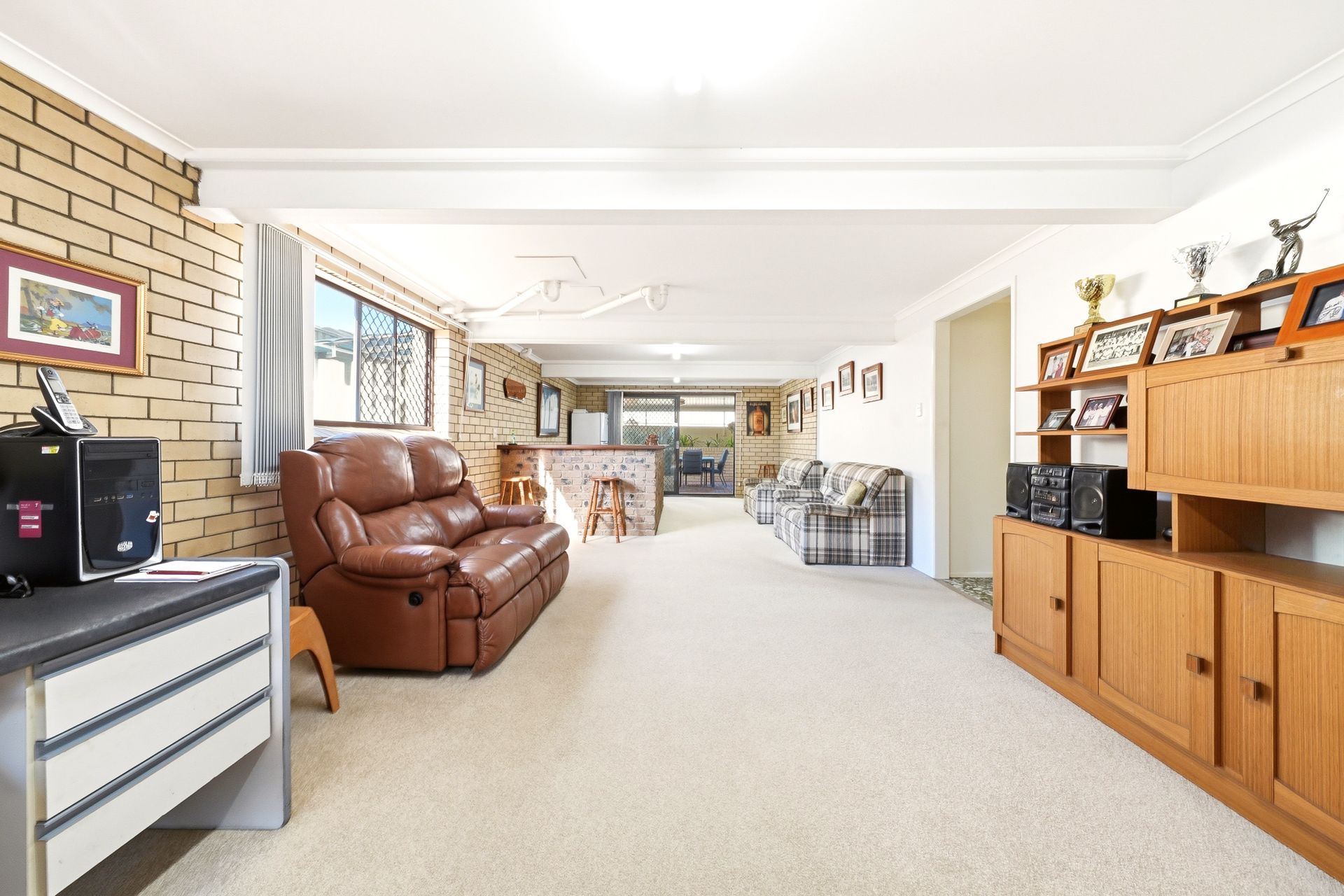 Downstairs provides excellent flexibility for growing families or those needing additional space. A large rumpus room with a wet bar offers the perfect setting for entertaining or relaxing, while the multi-purpose room or home office is ideal for working from home or accommodating guests. This level also includes a second bathroom and a separate laundry, with sliding doors opening directly to the outdoor entertaining area.