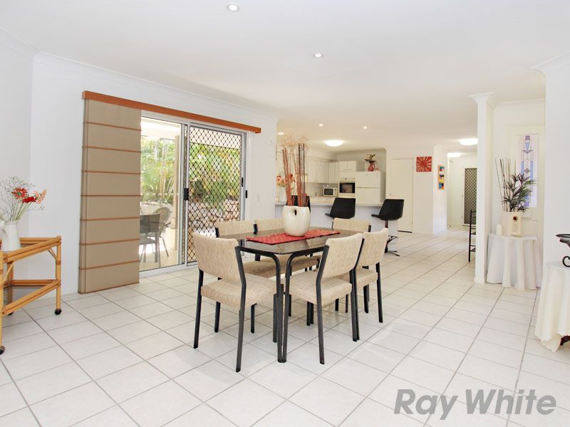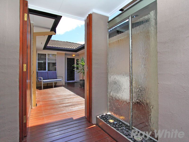With a desirable street presence that invites you to discover more, the home is stylish and in vogue with today's colors. The covered portico offers a secure and trendy, decked courtyard entrance, with waterwall and solid timber gate. The entrance greets you with a crisp tiled foyer with large white tiles that flow throughout the home. Multiple areas of formal and informal living abound creating separation and enjoyment for every member of the family.