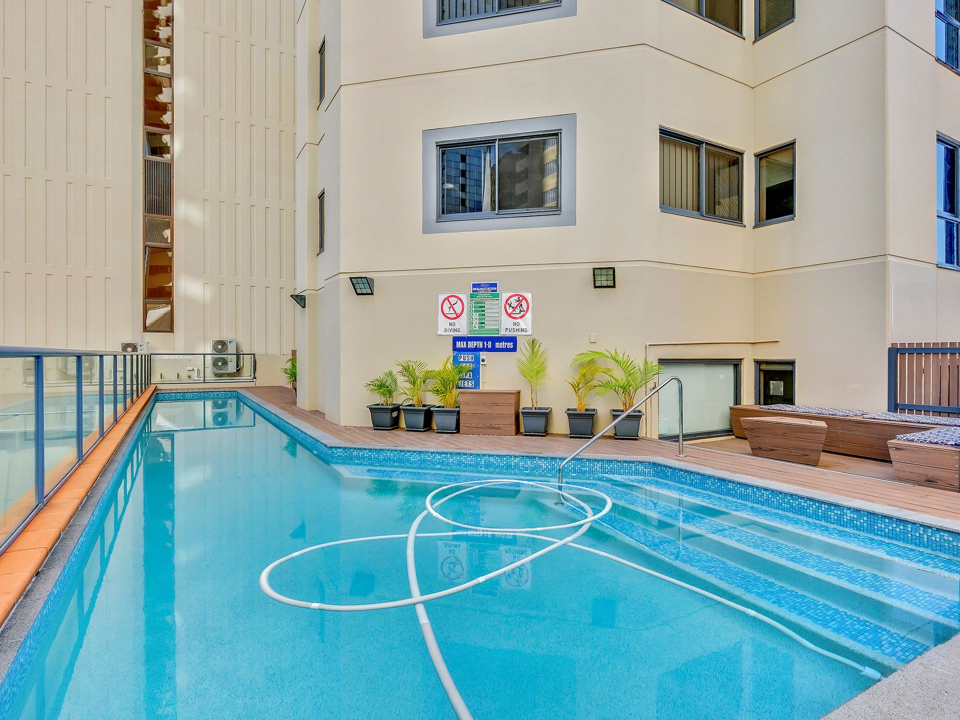 Equipped with an abundance of communal spaces to enjoy, the complex covers all bases: - Outdoor terrace with swimming pool & BBQ area and seating - Short stroll to QUT Gardens Point + Free Shuttle bus to QUT Kelvin Grove - Bus Stops virtually at your doorstep - Onsite convenience store - Licensed café / restaurant - Large communal Laundry - Commercial-grade kitchen - Student lounge + student dining rooms
