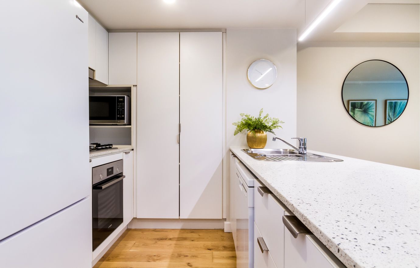 This apartment delivers on every level by providing spacious living, brand-new premium finishes, and a fantastic style. Features include: - 72sqm of open plan living - Oakwood flooring throughout - Sleek, modern central kitchen with marble benchtops and all new appliances - Fully furnished with Brand new modern stylish Furniture