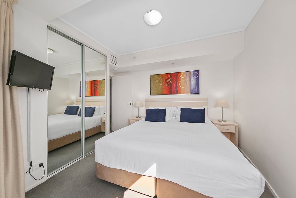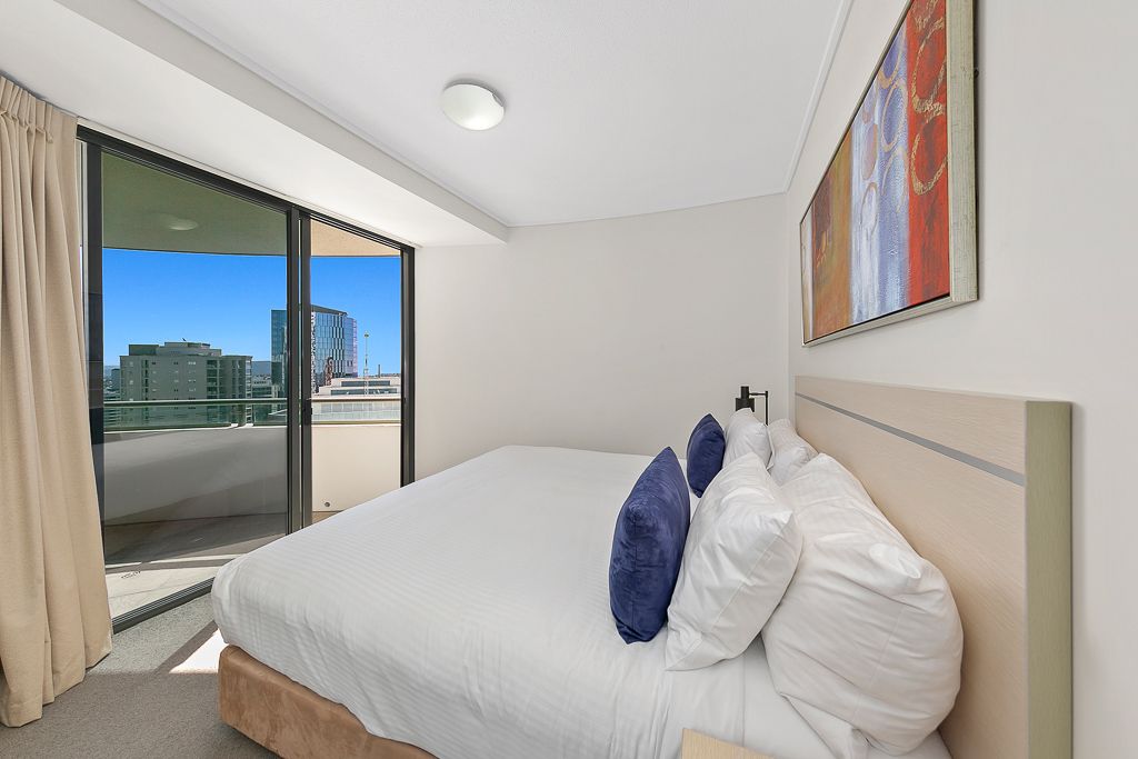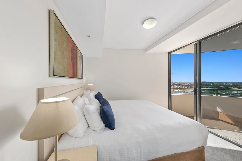 Positioned high on the 28th floor of the iconic Aurora Towers is this spacious 86m2 two bedroom rarely available 8 Style apartment. Living here will give the new owners a fantastic lifestyle. The property will suit either the owner occupier or investor. Available with vacant possession at settlement or you can continue with the current short-term rental arrangement with Oaks or get a long-term tenant.