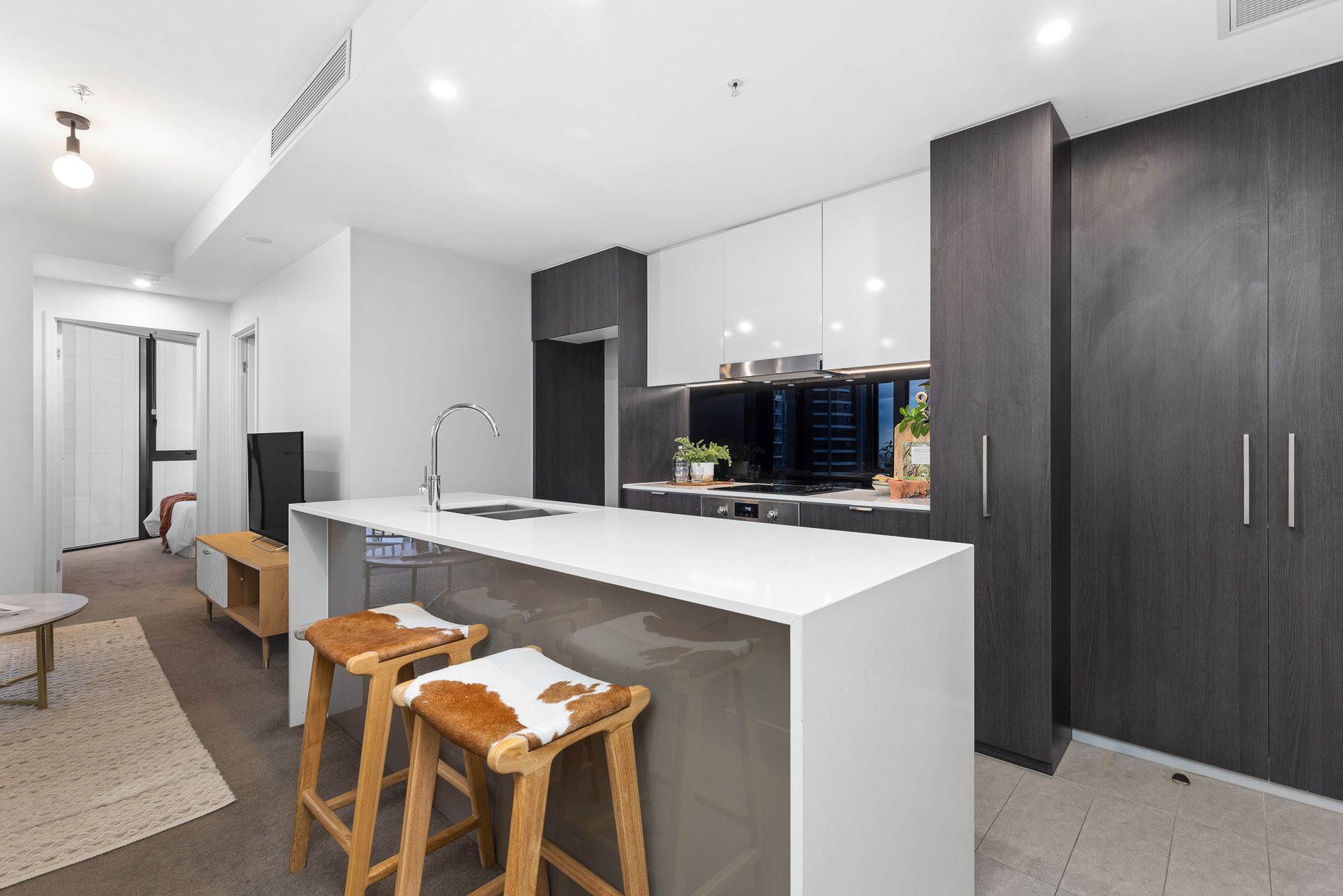 • Level 20 - Favourable North-East Aspect - Panoramic Views! • Gourmet kitchen, stone benchtops, large island breakfast bar • Two bedrooms with views, built-in wardrobes, master with ensuite • Ideal separation of bedrooms for added privacy • Floor-to-ceiling glass windows frame stunning outlook while maximising natural light • Zoned ducted air-conditioning • Premium fixtures and fittings with neutral colour palette • Facilities Include: Level 40 - stunning rooftop 20m infinity pool, sun lounges, alfresco terrace, BBQ's, private dining room, gym, library, movie theatre, grand lobby and concierge services.