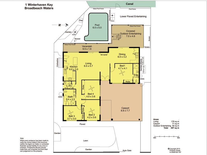 Additional features include; secure automatic front gate, generous carport, bathroom with shower and tub, poolside shower, air-conditioning, tool sheds, laundry, security screens, front lawn, and sandy beach along the waterfront.