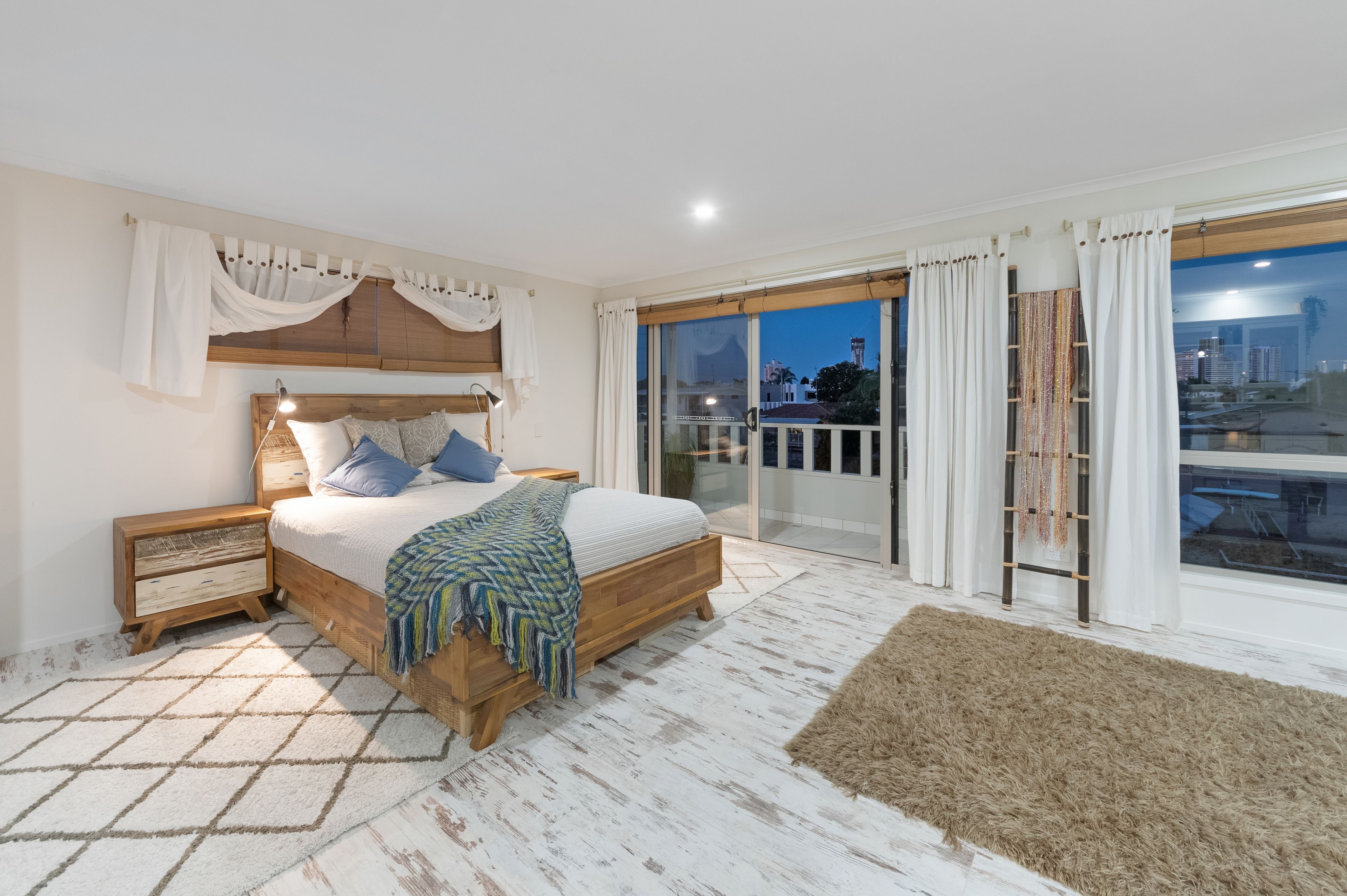 Upstairs was purpose built to take advantage of the magnificent skyline views. Featuring a large spa bath and private balcony, this certainly is a parental retreat.