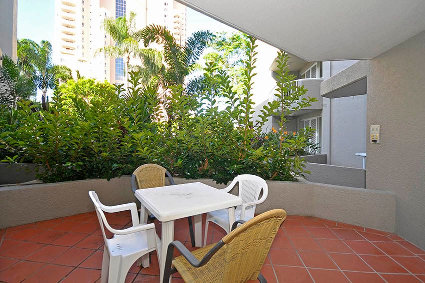 It's your choice! A superb investment property or an excellent personal residence; plenty of space in this 95 square metres (10 Sq's) apartment. Location is in a lovely resort just 300 metres from the beach and only a five to ten minute walk to the centre of Broadbeach to enjoy a seemingly endless selection of boutique shops & alfresco style eateries. The ground floor position with a large covered outdoor terrace in a garden setting ensures comfortable living for everyone, holiday guests or resident owners.