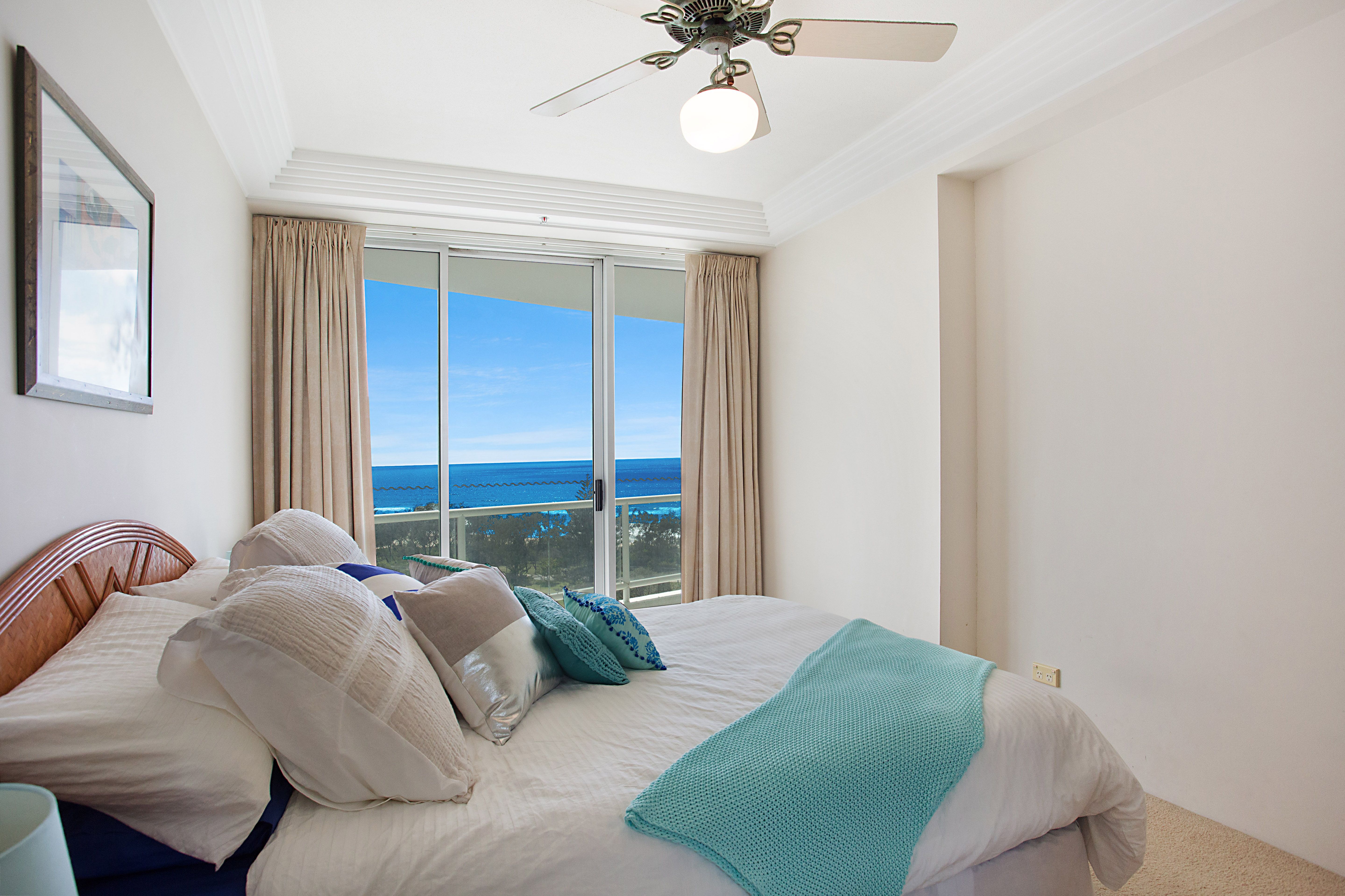 Situated on the 9th floor with a sought after North-East aspect, unit 49 features spacious open plan living throughout, a fully equipped gourmet kitchen, two large king size bedrooms and spectacular ocean, hinterland and city views.