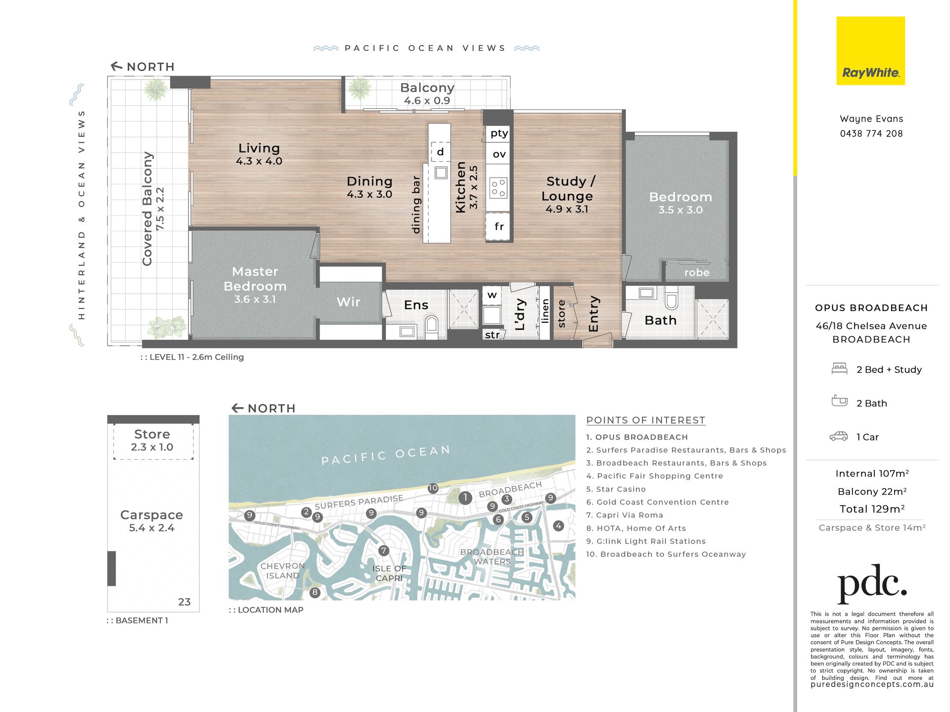 Don't miss this highly desired North-East aspect apartment perched on the 11th floor of Opus Broadbeach. Stunning ocean, city, hinterland and park views await the lucky new owners. Luxury finishes feature throughout this immaculately presented two bedroom, two bathroom apartment. If you need more space the apartment also boasts a generously sized multi - purpose room which is easily converted to a third bedroom. With just a couple of hundred metres between you and the golden sands of Broadbeach this is one you won't want to miss.