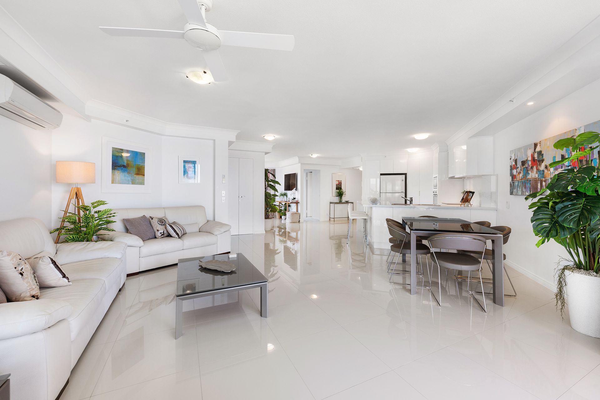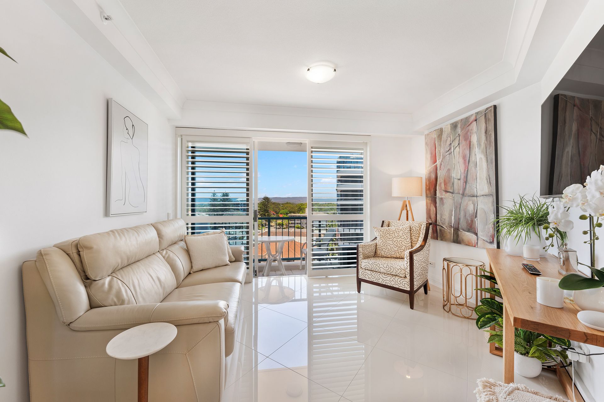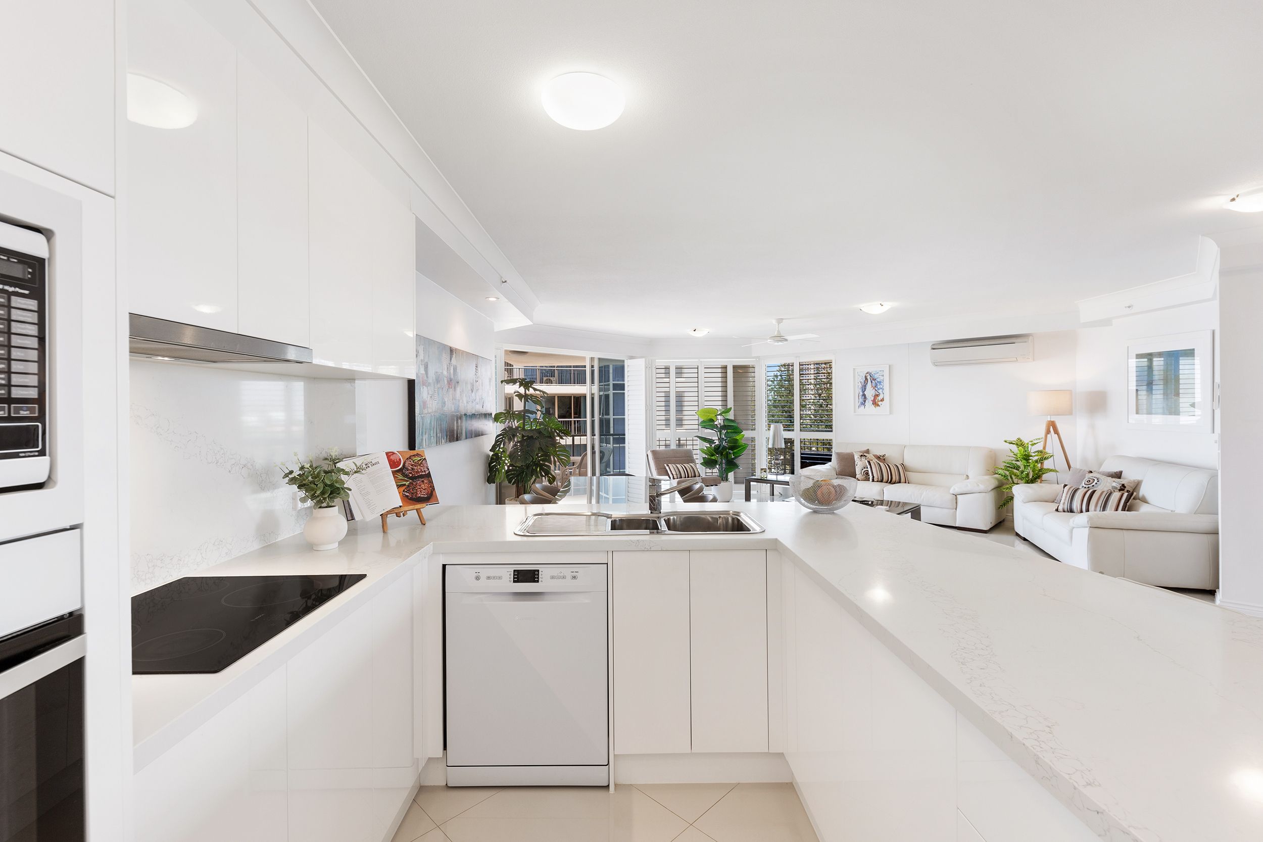 Discover the pinnacle of luxury coastal living in this impeccably renovated 2-bedroom apartment. As you enter the open-plan living and dining areas, you'll be greeted by floor-to-ceiling glass windows and tasteful white plantation shutters. From the elevated 8th floor, immerse yourself in panoramic views of the ocean and hinterland. With a spacious floor area , this apartment showcases two expansive bedrooms, an open-plan layout, and the flexibility of a second living area or study. The master suite, featuring an en-suite bathroom, walk-in wardrobe and balcony with stunning ocean views