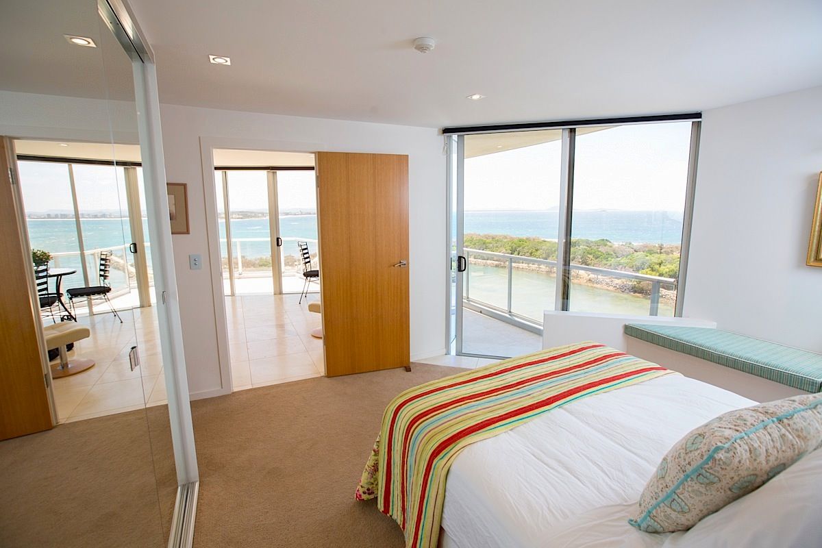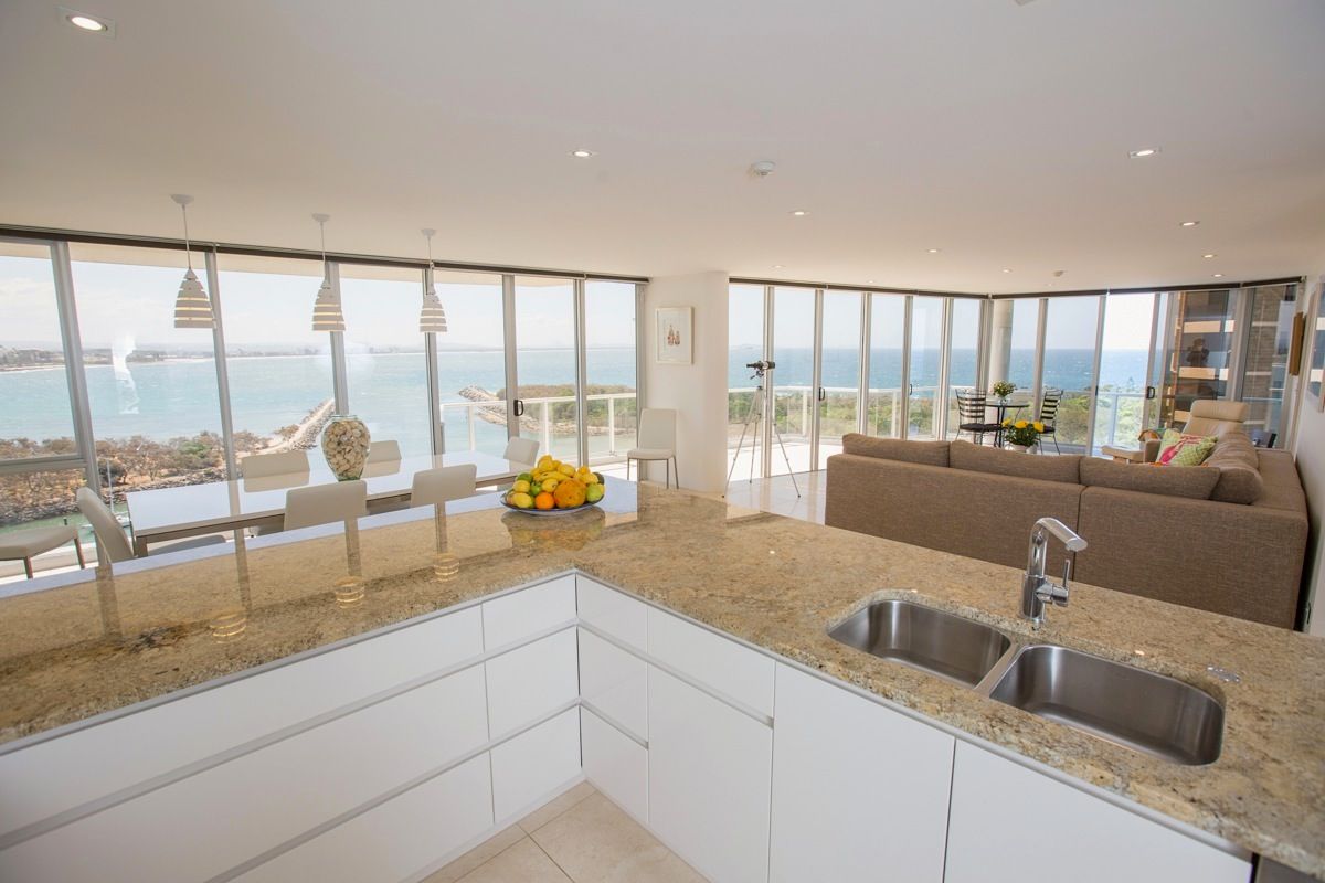 This unique position takes in near 360 degree views, from Moreton Bay across the Hinterland, over Mooloolaba Harbour and Beach, up to Mt Coolum, Old Woman Island and out to the horizon - it is simply breathtaking. Be constantly entertained by activity on the water, whether it's fishing trawlers heading out for the days catch or the kite surfers along the coastline, there is always something to see, not to mention an unrivalled vantage point for fireworks on New Years Eve! The property itself sits high above sea level sharing the ninth floor with only one other residency. Open plan throughout with no expense spared, the main living area is decked out with travertine tiles, floor to ceiling glass windows and doors which flow out the balcony taking full advantage of the outlook to the North. The Beautifully appointed kitchen fitted with Miele appliances, soft close draws, ample bench and storage space and granite surfaces which allows ease of preparation for both day to day living and entertaining. The principal bedroom offers fantastic views of the Mooloolah River Inlet & PT Cartwright Headland, Modern ensuite with wall to floor travertine tiles + Granite vanity. The two appointed bedrooms share a stunning bathroom and are located on the eastern side of the apartment, all with uninterrupted ocean views. The fully secure Breakwater complex features a recently completed resort style BBQ and pool area, with Sauna and additional shower and bathroom facilities all accessed via a lift. From here you can safely tuck your car away in the underground parking with and enjoy the surrounding natural reserve and parkland along the Mooloolah River where there is great family areas with BBQ's and playgrounds - not to mention you can also walk along the stunning Kawana beach which runs the entire length of the coastline all the way down to Moffat Beach in Caloundra. This will attract international attention for astute lifestyle investors and is an absolute must see.