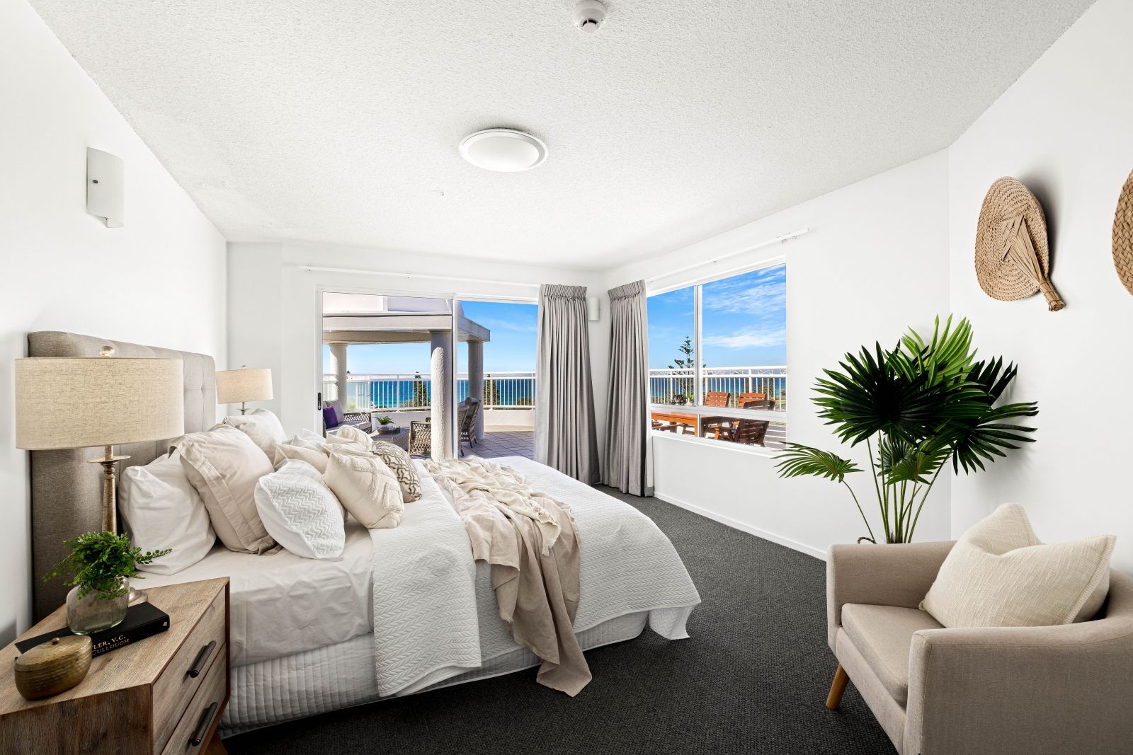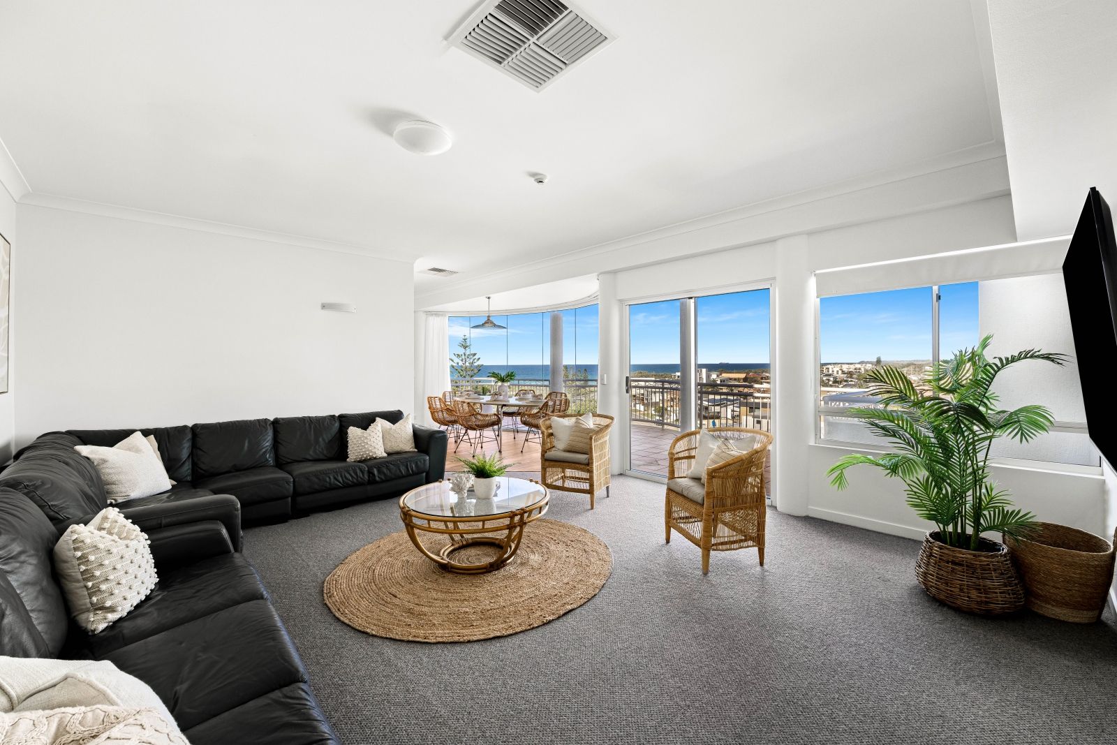 The master suite is sure to impress, you are greeted with a spacious walk-in wardrobe, generous ensuite with a spa bath that you can ultimately sit back, relax and watch the waves roll in. Enjoy your large east facing terrace perfect for those morning coffees which allows you to immerse yourself with the luxury lifestyle high in the sky. Two additional bedrooms share the main bathroom and separate powder room, with an abundance of wardrobe and hanging space, dressed with woollen blend carpet and a generous balcony. These rear bedrooms are complemented by views of the ocean, city and hinterland perfect for watching the sunset over the hinterland.