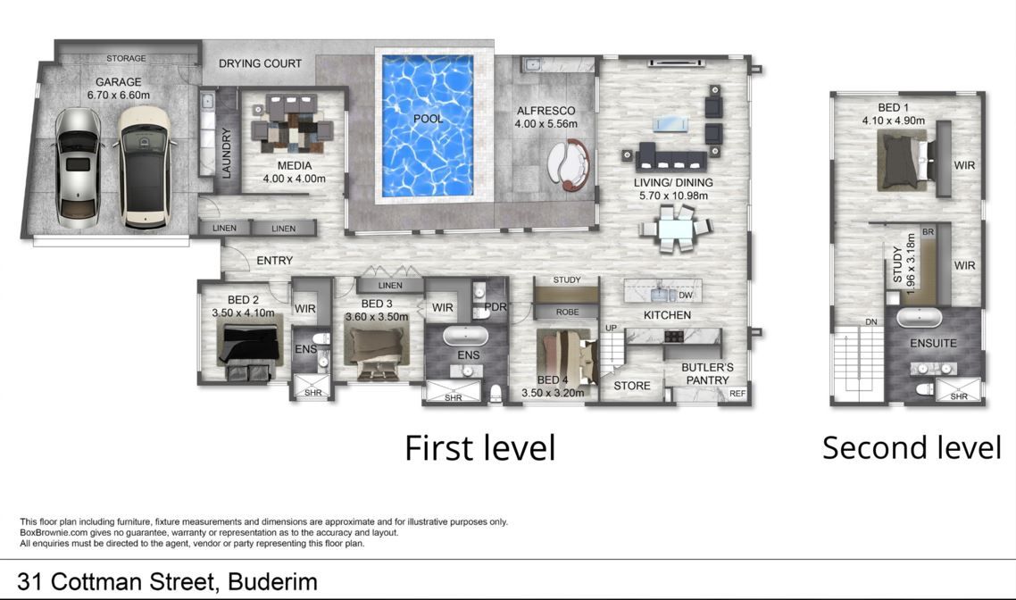 • Clever indoor-outdoor flow in the main living space and undercover entertainment area with a sparkling in ground pool • The kitchen is an entertainer's dream complete with soft closing drawers/cabinetry, breakfast bar and a butler's pantry • A built in barbeque and sink by the pool is perfect for outdoor entertaining • Media room gives flexible living space • The first level has two bedrooms that share a well appointed bathroom with a two way bathroom, plus another double bedroom has a walk in robe and an ensuite • The second level is the master bedroom suite complete with a private study, dual walk in robes and a luxurious ensuite • Well appointed laundry , generous double garage offering plenty of storage and off street parking • Ducted air conditioning and ceiling fans • Prestigious Buderim pocket with a private parkland and walking tracks • Top of Buderim location , in close proximity to sought after private as well as public schools