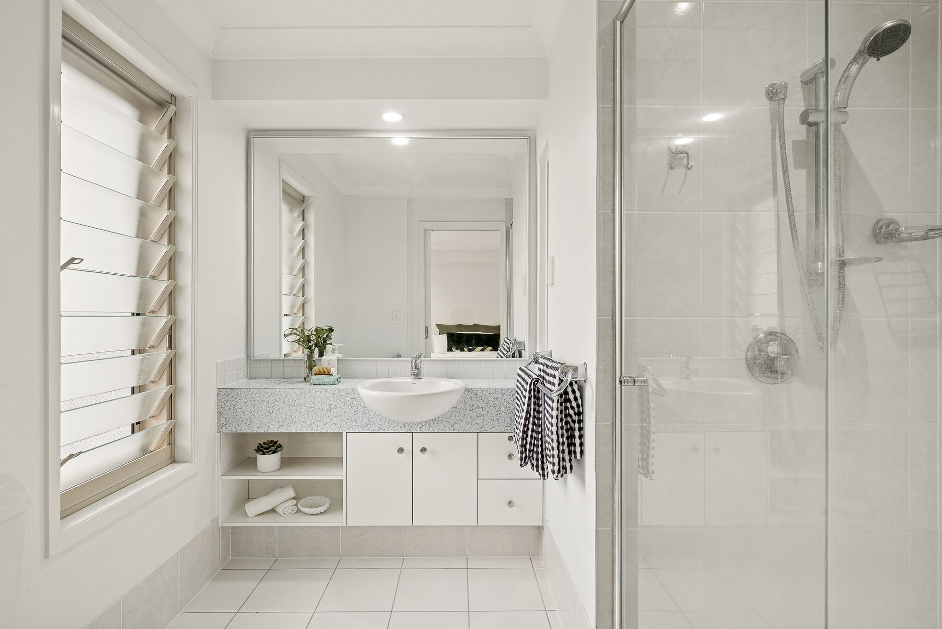 Three generous bedrooms, with split-system air conditioning in each, offer plenty of space for relaxation, with the master featuring its own ensuite and a private balcony, the perfect retreat to unwind. A separate bathroom adds extra convenience for family and guests, while quality finishes and a considered design bring a calm, refined atmosphere to every corner of the home.