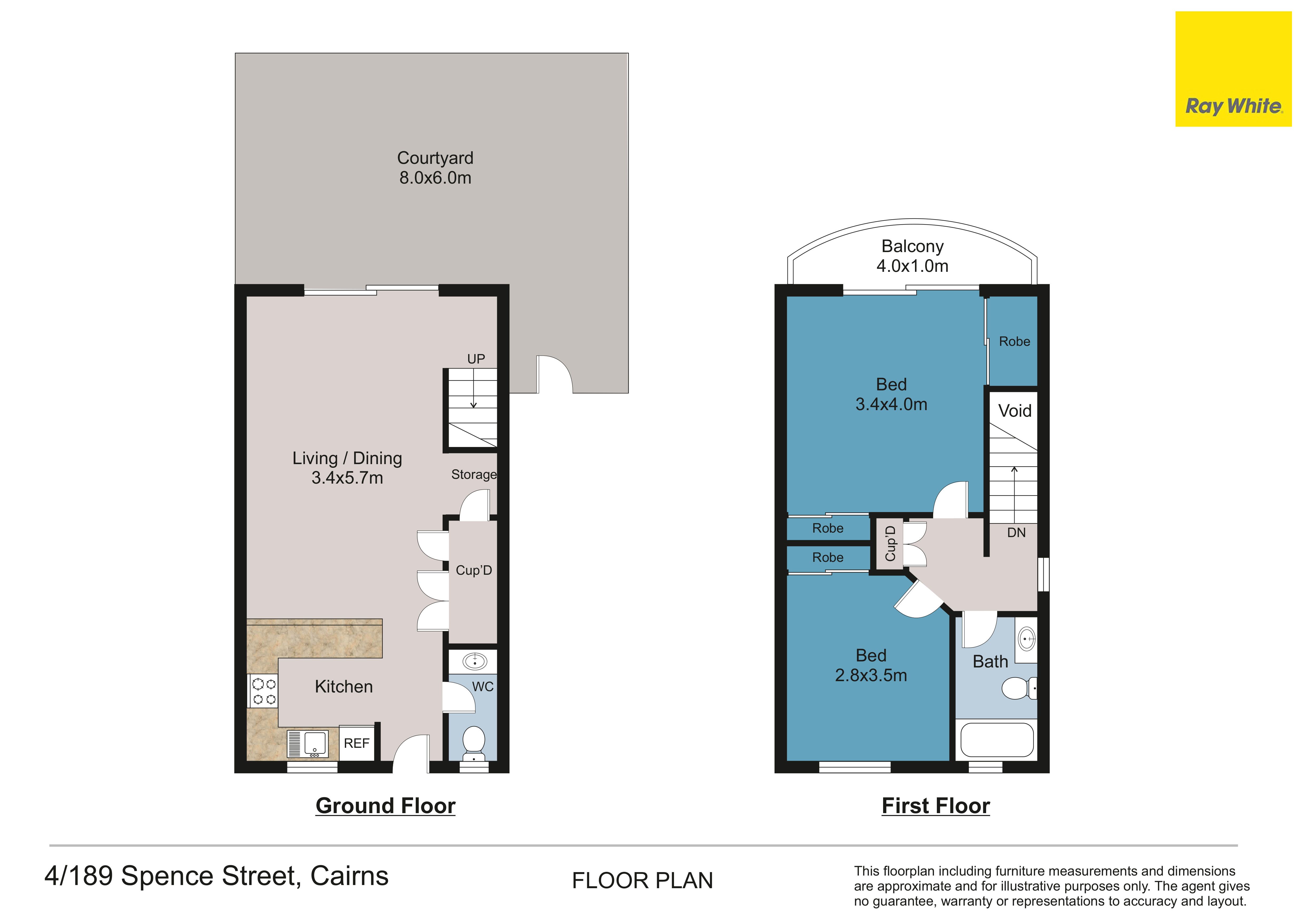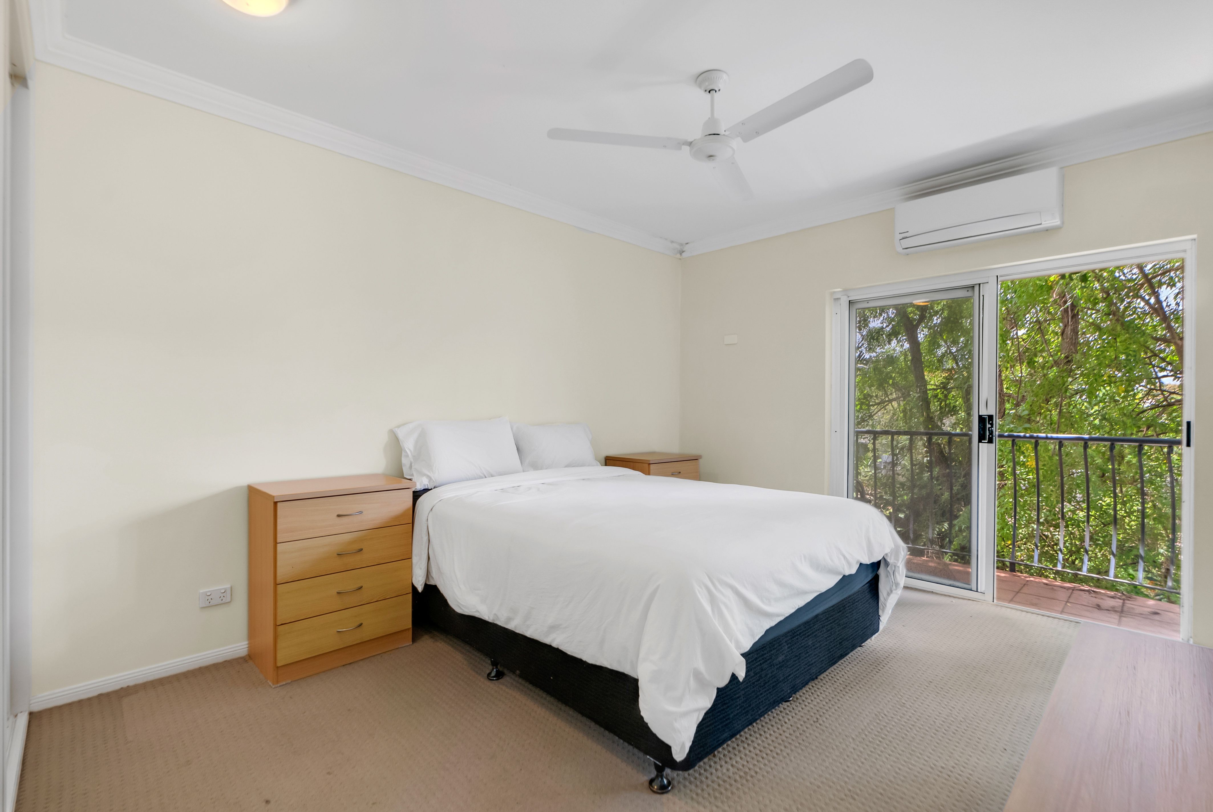 PROPFERTY FEATURES: - Centrally located kitchen with ample cupboard and bench space - Tiled throughout kitchen and living area - Air-conditioned throughout - Both bedrooms located upstairs with walk-in robes - Master bedroom includes private balcony - Sizable courtyard, fenced, - Security screens throughout - Huge courtyard fully fenced for privacy - Swimming pool in complex - Floorplan: Approx 84sqm - Pet Friendly (subject to body corporate approval)