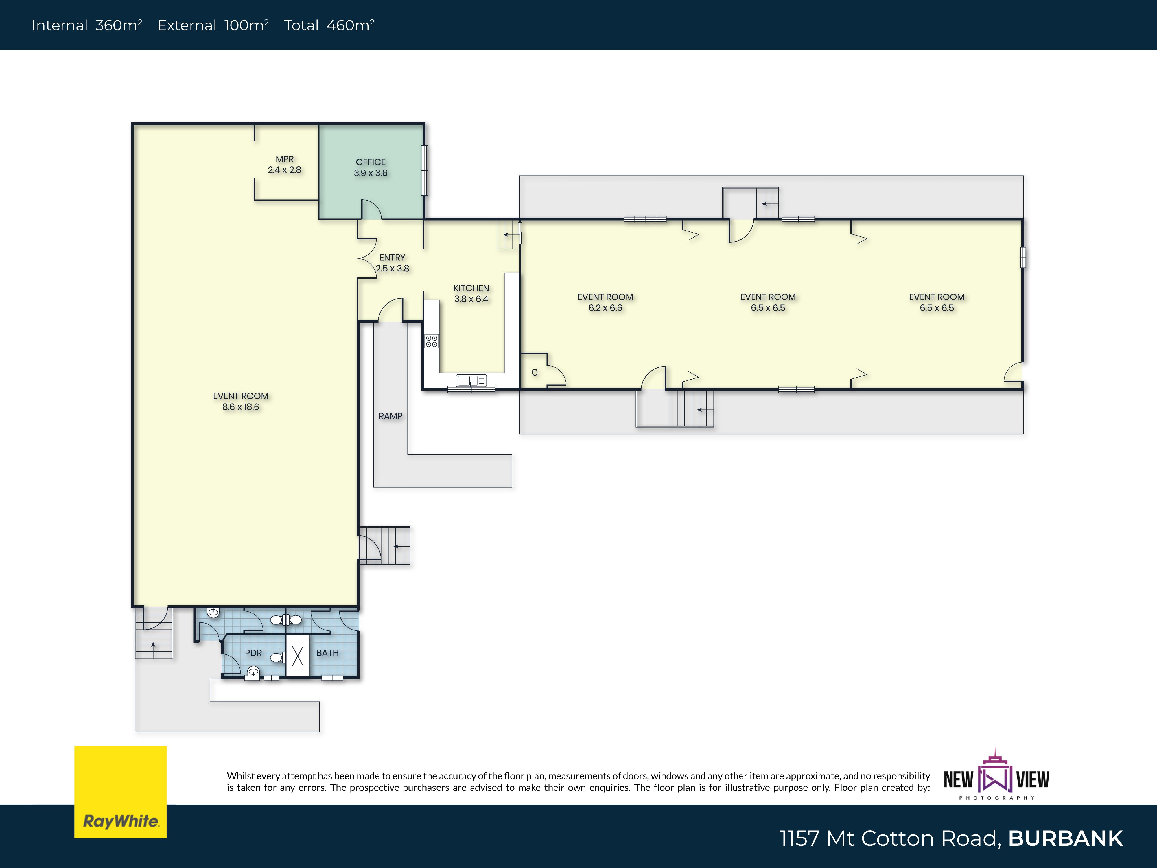 Property Features: - Meticulously maintained, with the interior and exterior recently painted following a stylish palette - 22 car parks - Solar panels - Split system air-conditioning throughout - External ladies and mens' lavatories - 4x rooms/halls, each with an exit outdoors - Spacious room upon entry - Large hall, with dividers to transform into 2 separate rooms. One is fitted with a modern kitchenette - Generous room with VJ Panels - A second large hall, with stunning cathedral ceilings
