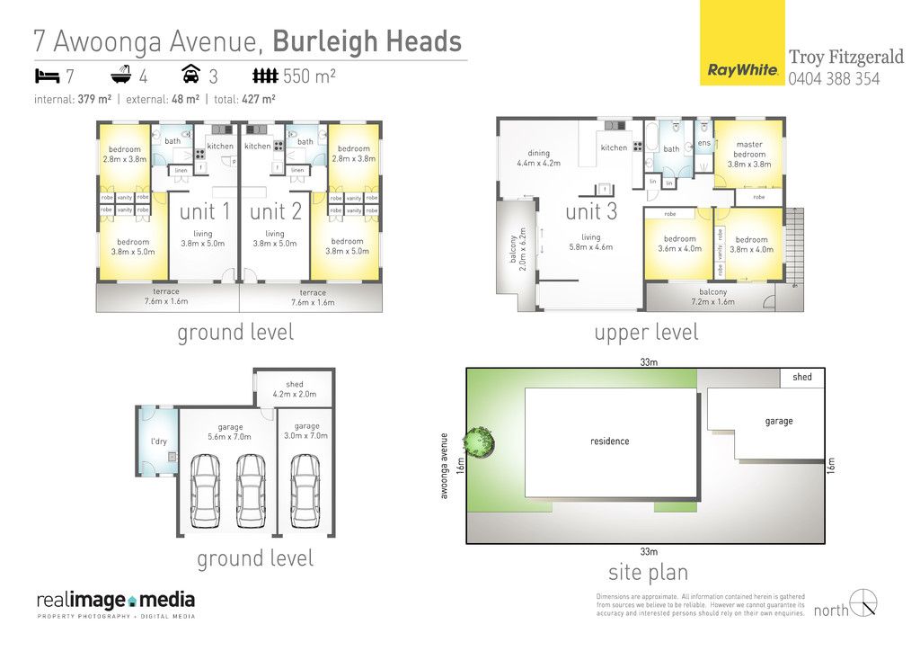 7 Awoonga Avenue offers- • 3 units • 7 bedrooms, 4 bathrooms, 3 car spaces • Communal laundry • RD5 Medium Residential Zoning - STCA* • 550m2 block*