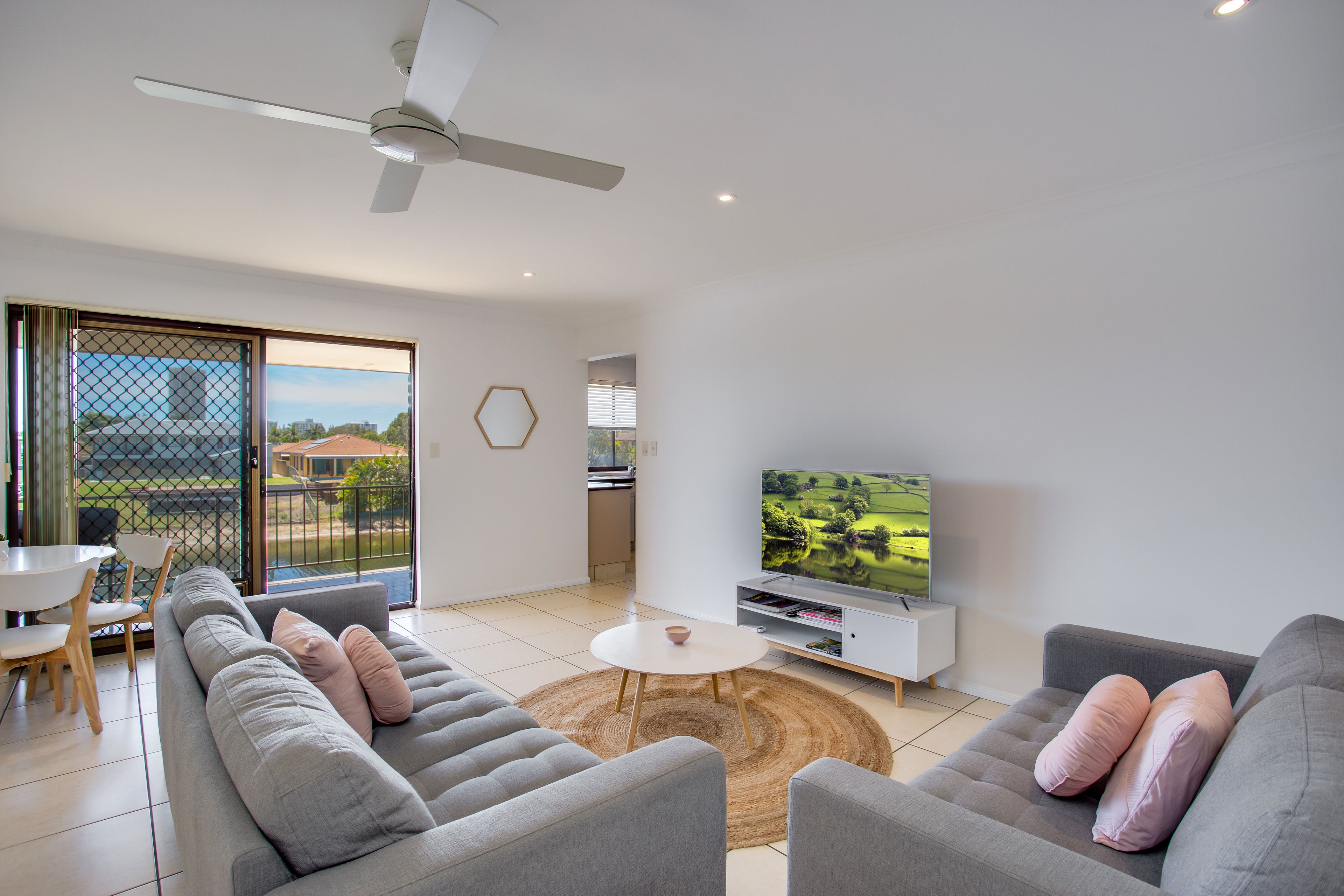Lucky you!! Seeing will have you believing, you can be at the waters edge in a few short steps. Grab your kayak or throw in a line or simply breathe in the tranquillity of life living so close to the water. Situated in friendly, quiet building this upstairs unit allows you to capture the beautiful sea breezes all day long. Modern furnishing adorn this Unit, freshly painted, open plan living and 2 bedrooms with the flexibility of an extra half sized room for an Office or visitors bedroom. Being only 1 km walk to the beach and the exciting cafe lifestyle of Burleigh, there really isnt alot more you could wish for. Currently leased by A1 tenants this Unit has everything the dream of living the Gold Coast lifestyle portrays.