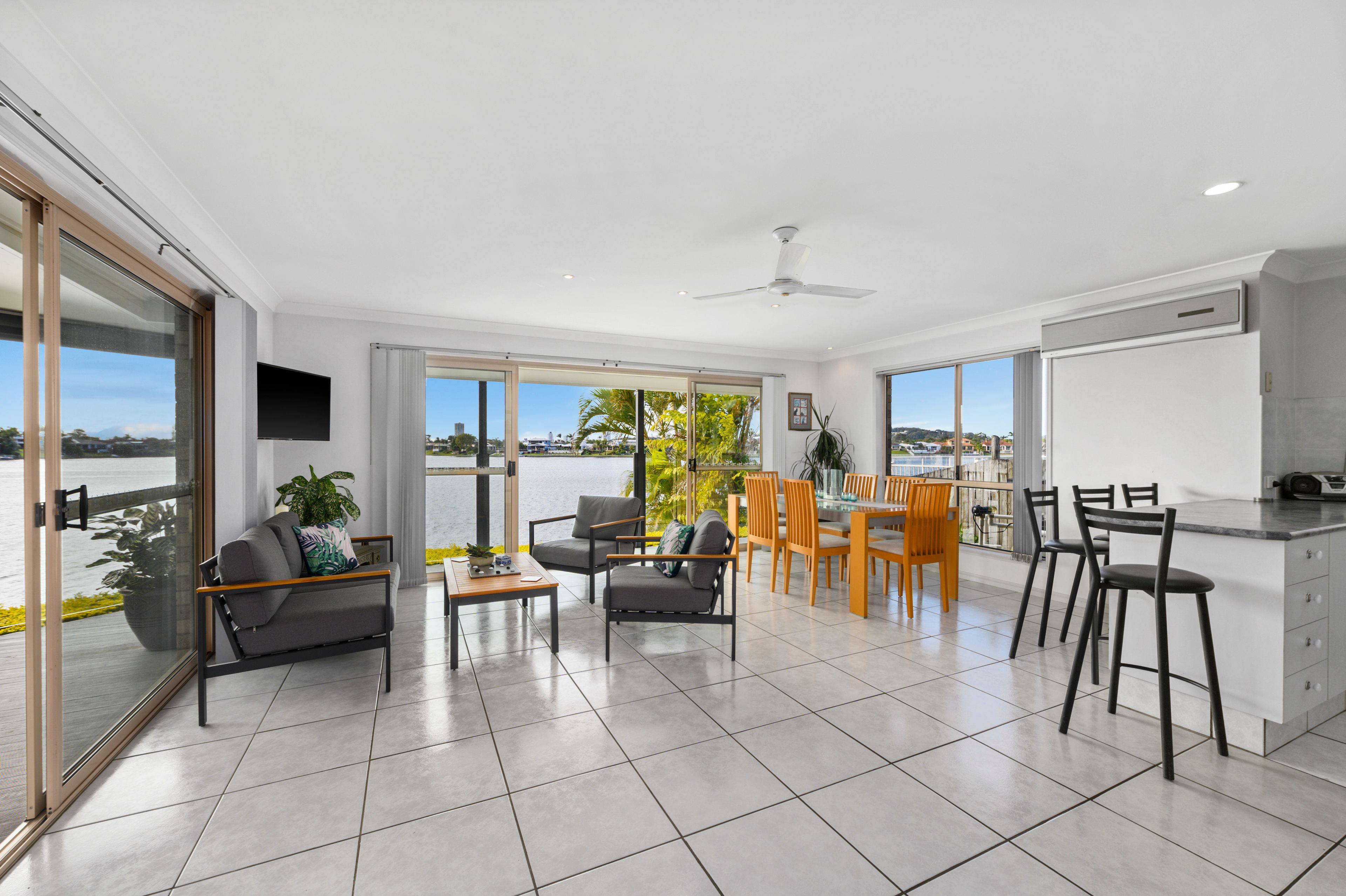 Whether you're expanding your family or needing to move closer to premiere schools and the Gold Coast's most sought-after beaches, this waterfront home is the epitome of privacy, peace, and tranquillity. With exceptional livability, this fantastic single-level floor plan is perfectly designed to maximise the wide waterfront views. The light and bright living & lounge room flows seamlessly to the outdoors onto your undercover patio area with its own entertaining space that overlooks the inground pool and out to Lake Heron . The property boasts 4 bedrooms, with luxury water views from the master suite. This space is complete with a sizeable walk-in robe, luxurious ensuite & exclusive access to the pool & patio.