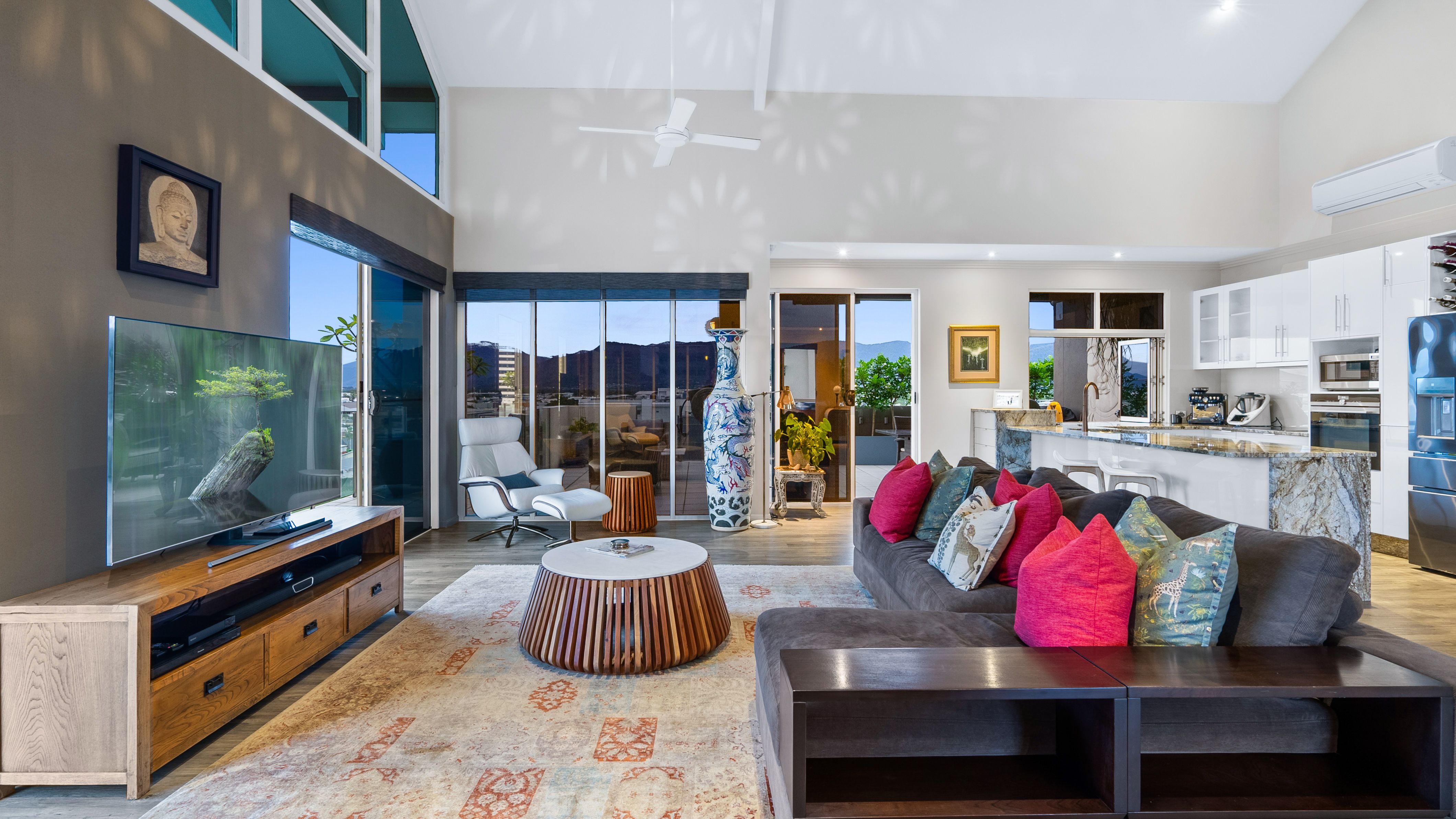 Moments from the Cairns Esplanade, with glimpses of the ocean, sweeping river views, and outlooks stretching to the iconic Walsh's Pyramid, this one-of-a-kind penthouse delivers the ultimate fusion of exclusivity and convenience.