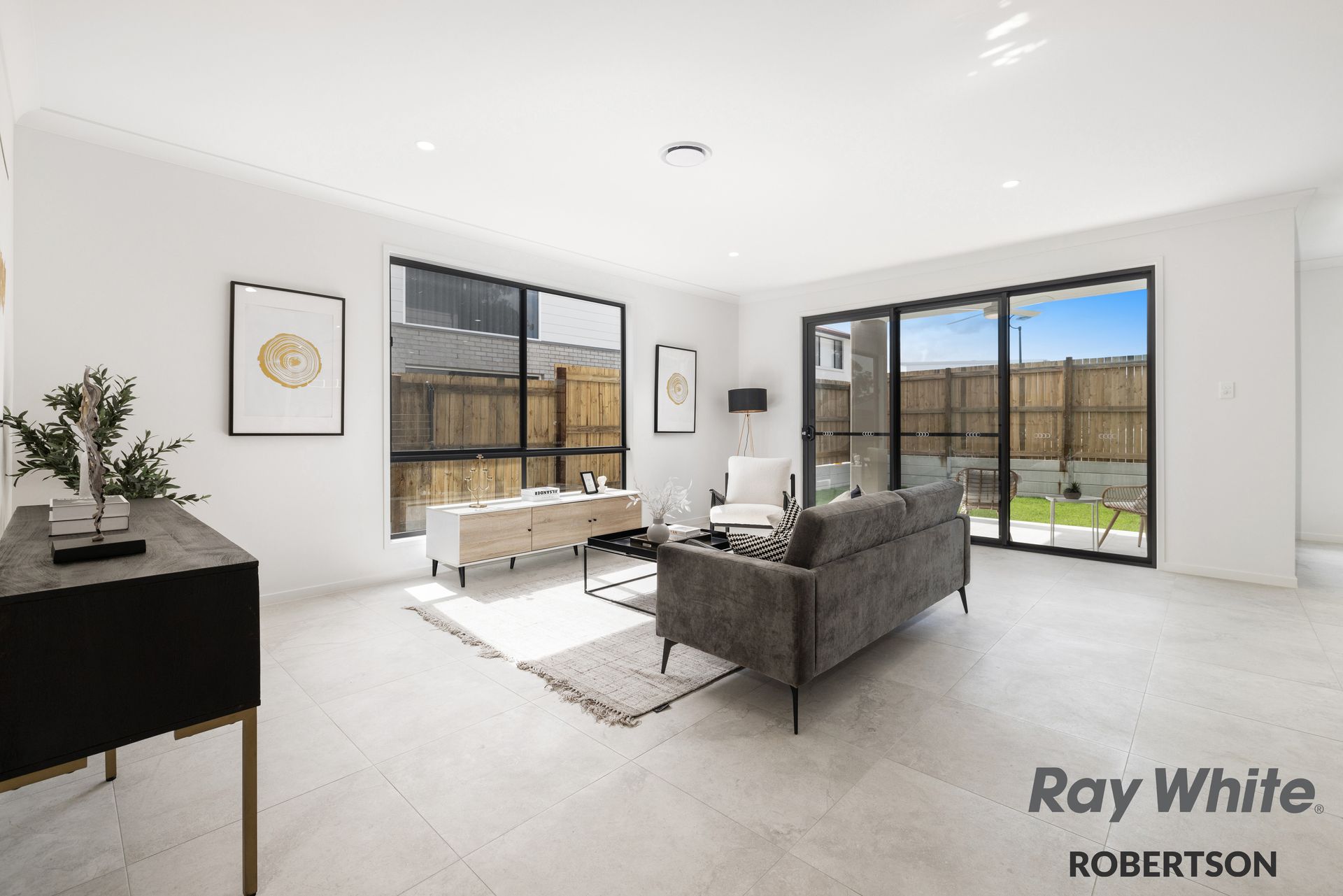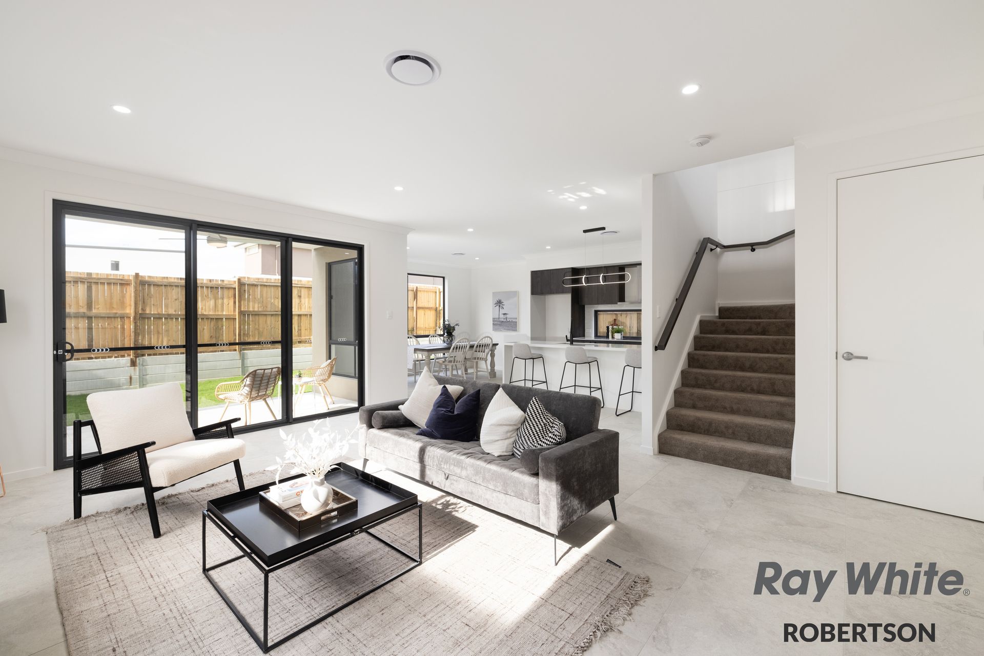 Throughout the ground floor and all wet areas, large 600x600 tiles add a touch of sophistication, combining aesthetics with practicality. The contemporary design extends to every detail, creating a cohesive and visually appealing living space.