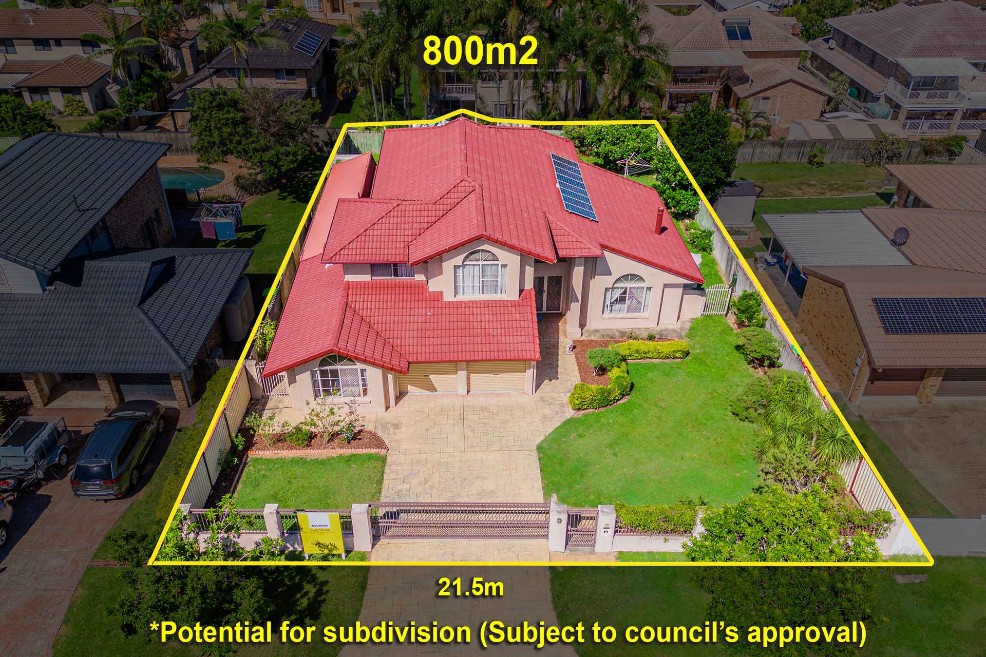 Features: - Desirable north - south aspect, premier position and walking distance to city buses (150) - Solid family home on a huge 800m2 level allotment (21.5m frontage + subdivision potential subject to council's approval) - Fully fenced with front security gate - Multiple living spaces including the formal living and dining, plus another main dining and living - 5 spacious bedrooms and 3 bathrooms (1 bedroom and 1 bathroom on the lower level) - Master bedroom with a walk-in robe, a huge storage room and an ensuite bathroom - Gourmet kitchen with pantry and dishwasher, overlooking the beautiful outdoor area - High ceiling in the formal living room, 5 x air conditioners and security screens - Fireplace, alarm system and ducted vacuum system - An expansive covered alfresco overlooking the massive usable backyard - Remote controlled double garage with additional storage space, solar panels, water tank and a garden shed