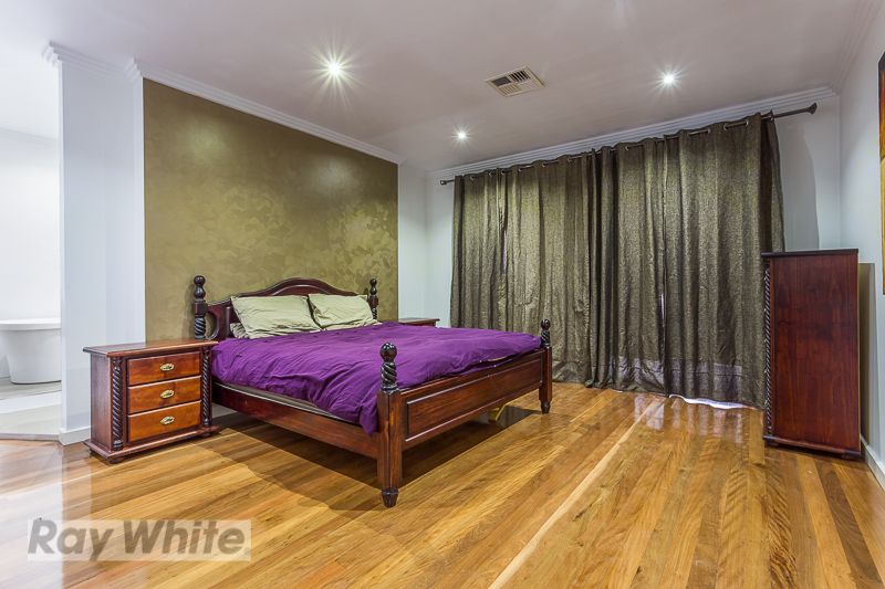 The parents retreat is peaceful and private and features an impressive walk-in robe, a stylish ensuite with dual vanity, dual shower, free standing bath and an adjoining private rear deck.
