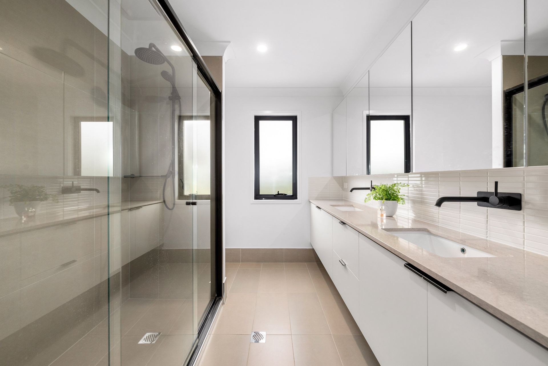 Venture upstairs and appreciate the sheer size of the upper layout of the home which includes an oversized study nook with extensive built-in desk. The enviable Master bedroom is cleverly positioned on its own exclusive wing overlooking the park and boasts a large walk-in-robe and ensuite with large shower with matt black rain showerhead, dual vanities, and full-height designer tiling.