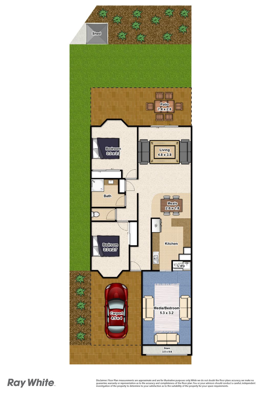 The garage has been converted into extra living, let it be your choice what you use it for either a third bedroom, or media room maybe another living area, you decide. A carport is still available to ensure your vehicle is out of the weather and a neat little court yard at the back with side access gate.