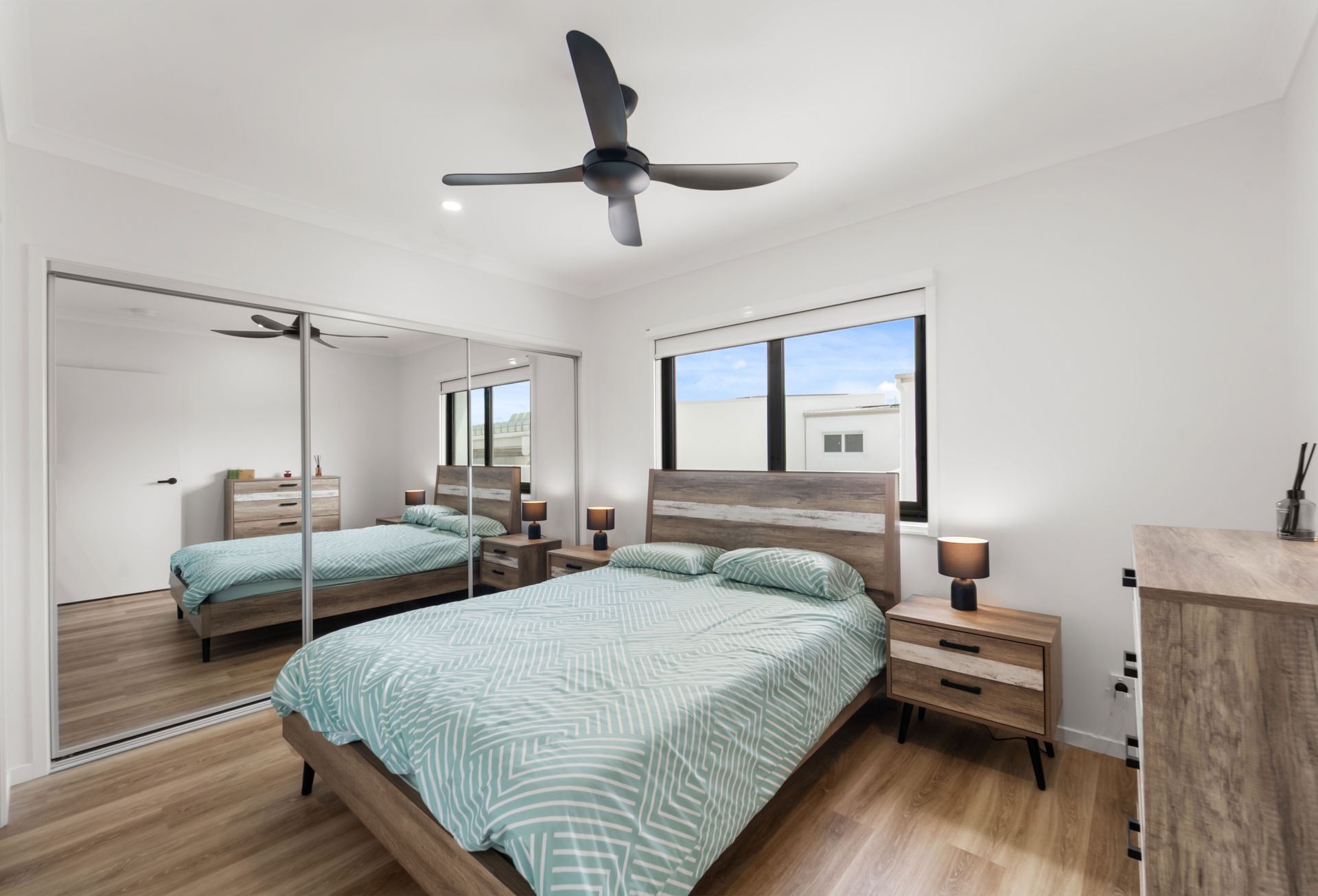 • 2 well-appointed bedrooms, each complemented by its own bathroom • Modern kitchen with floor to ceiling tiling featuring an electric cooktop, oven, and dishwasher • Light-filled dining area with ceiling fan and ducted air conditioning • Comfortable living zone with ducted air conditioning and ceiling fan • Spacious master suite with ducted air conditioning, walk-in robe, private ensuite, and balcony access • Second bedroom complete with ensuite, ceiling fan, and air conditioning • Tiled alfresco area, perfect for outdoor entertaining • Single lock-up garage incorporating a powder room and laundry • Tesla charging station for added convenience • Solar battery system for enhanced energy efficiency • Complete with a 10-panel solar system, adding a smart and sustainable touch