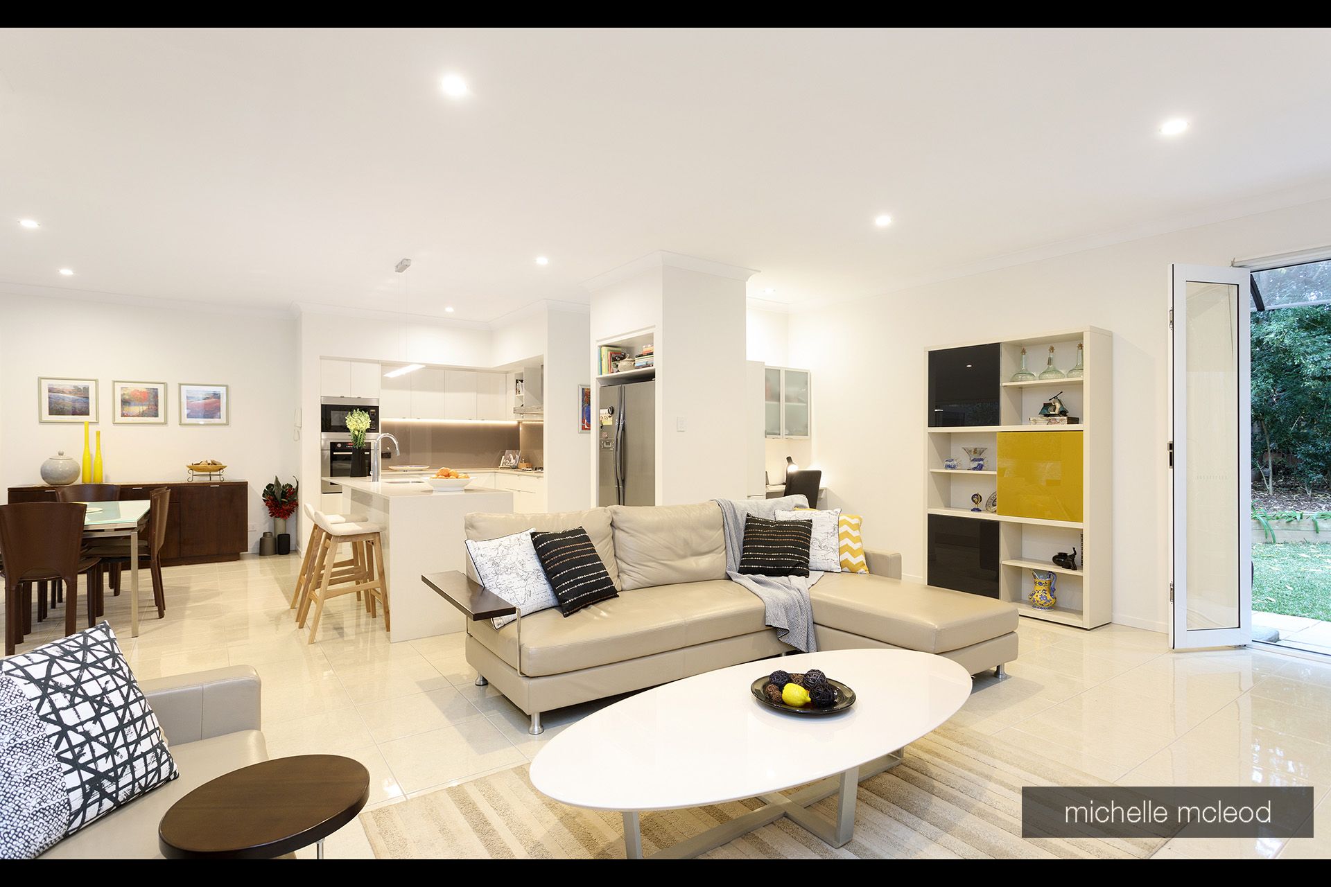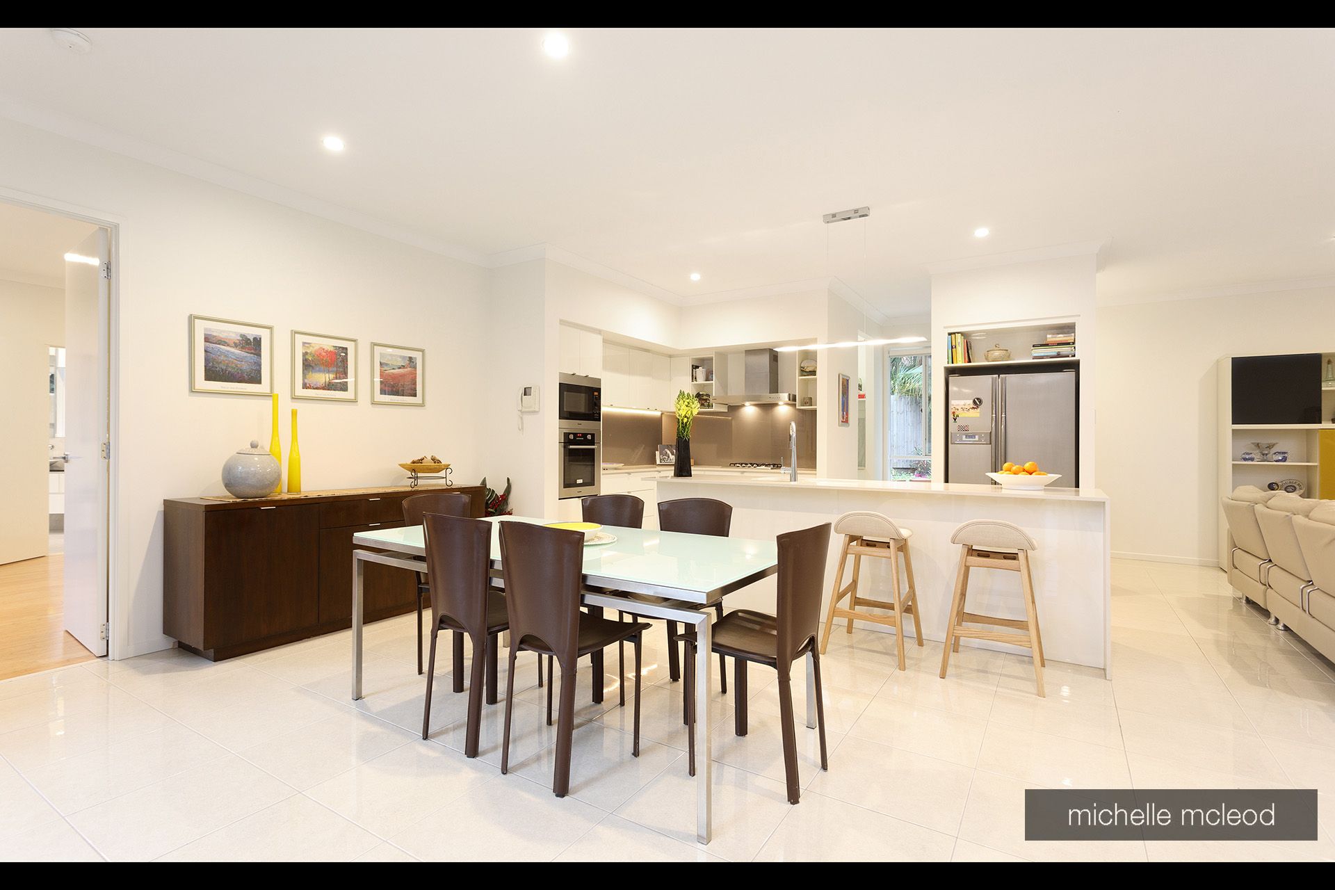 From the stylish entry you can take the separate staircase to the guest/relatives accommodation complete with kitchenette, living room, bedroom and bathroom. This is also excellent for a home office, au pair, or teenagers haven.