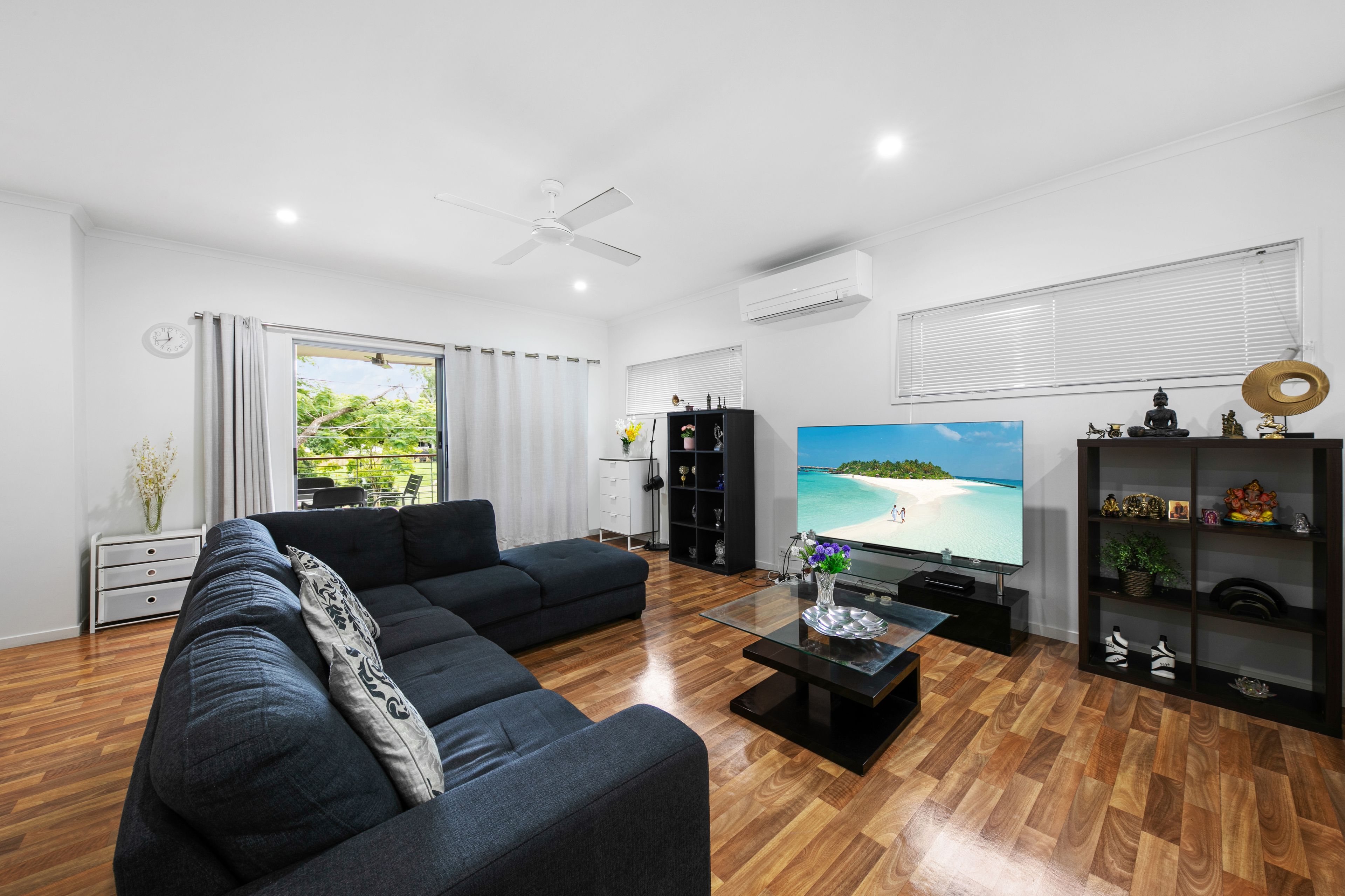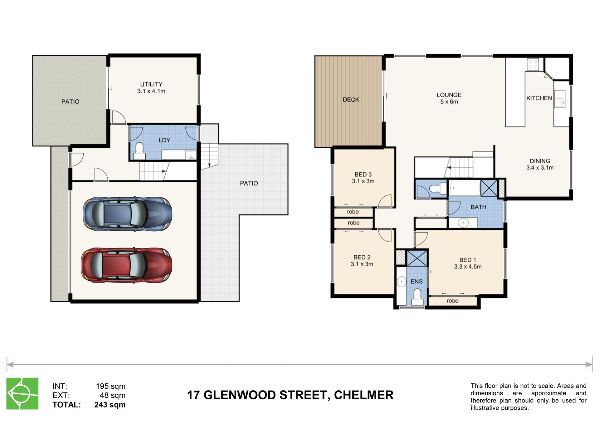 Additional Features: - Front and rear patios for further entertaining and outdoor play - Three upper level bedrooms with built-in robes and air-conditioning - Master bedroom boasting an ensuite - Modern family bathroom with a shower, bath and separate toilet - Ground floor air-conditioned utility room and a separate laundry with second toilet - Remote-controlled double garage with internal access