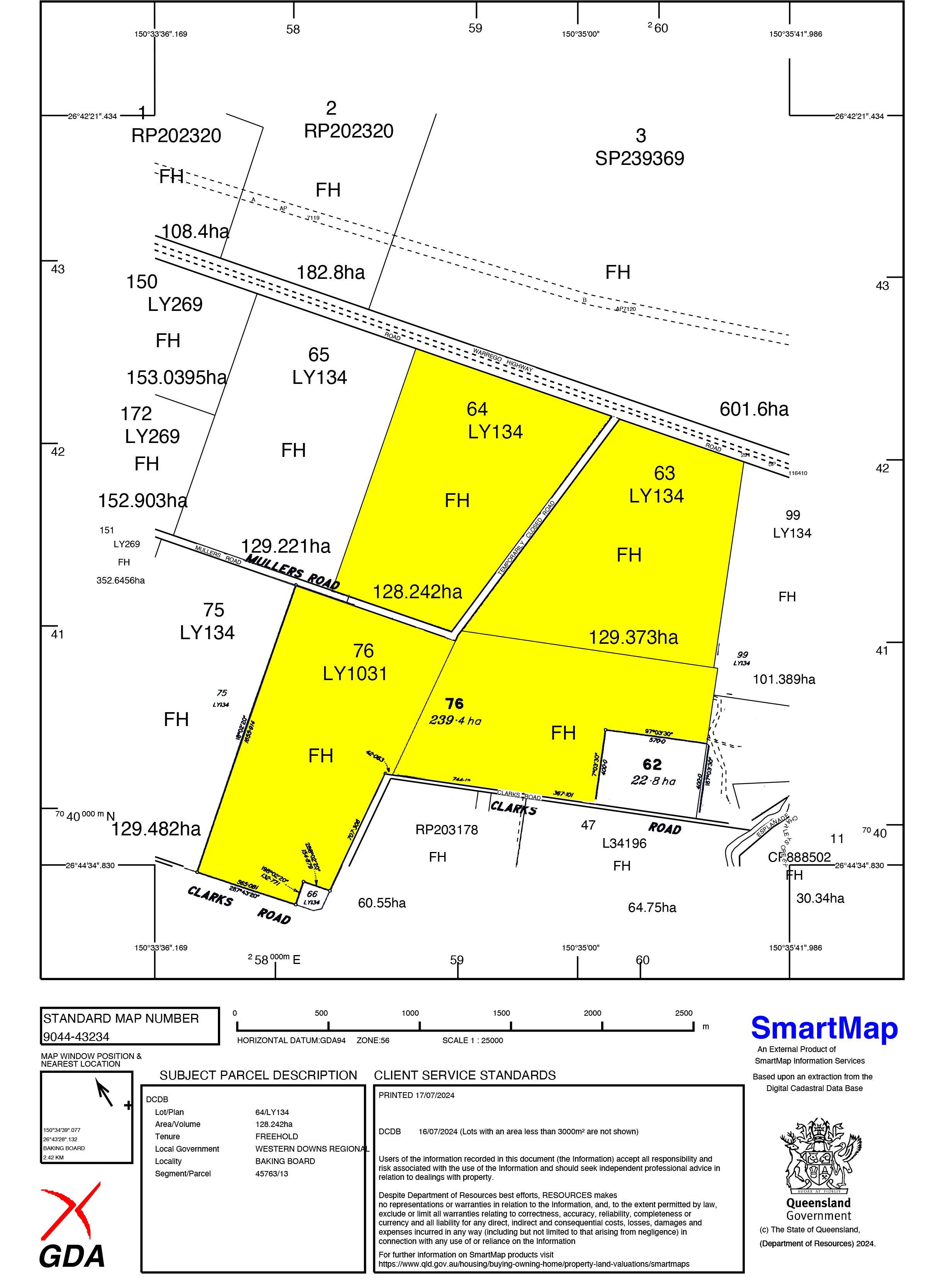 Water: • 640 ML overland flow license • 500 ML catchment irrigation dam • Access to treated town water • Pipeline and pump located at WDRC treatment supplies to the 'Yarnham' 20 ML Turkeys Nest