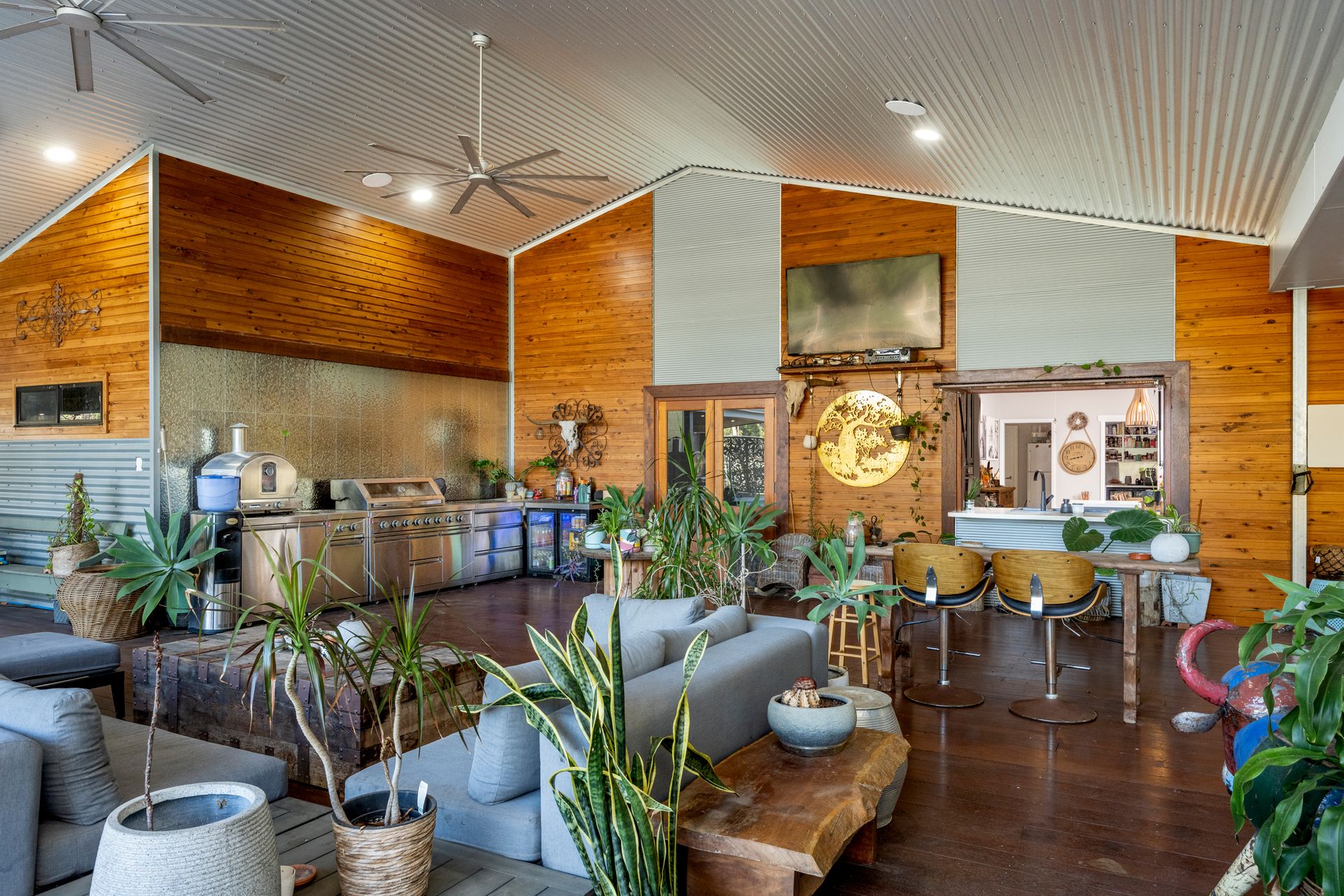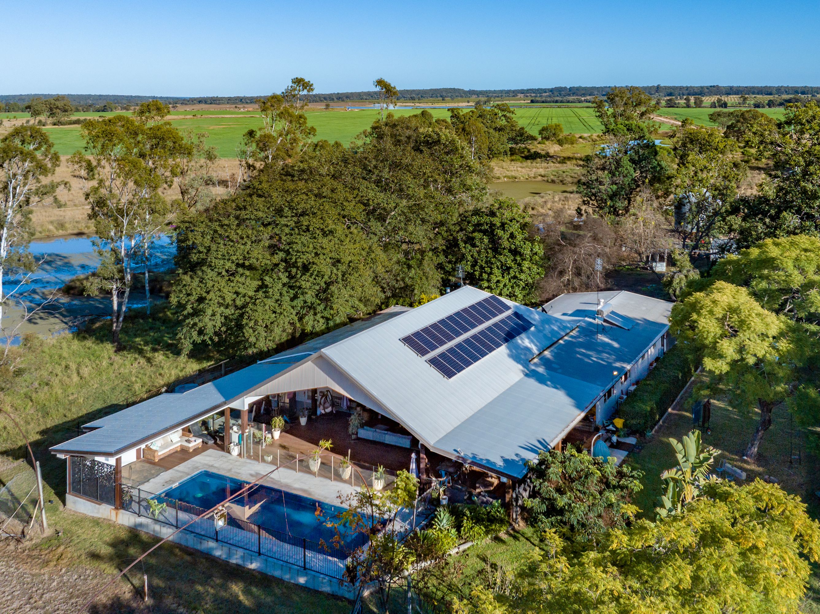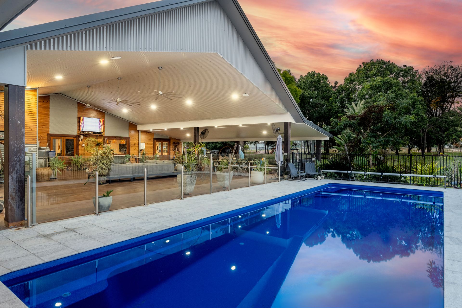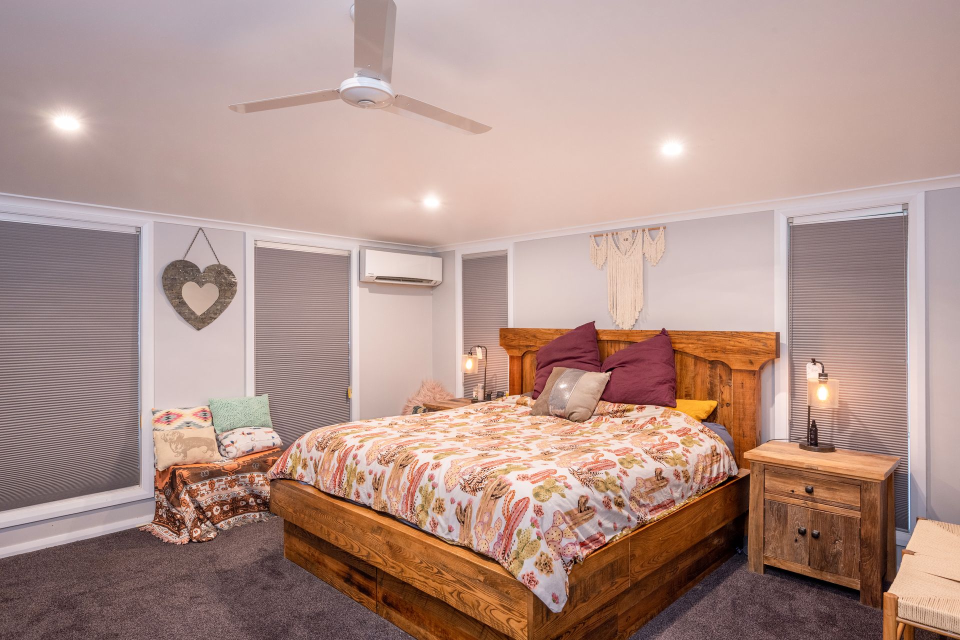 Timber residence set on steel stumps with 5 spacious bedrooms, including main bedroom featuring ensuite, spa, walk in robe, remaining bedrooms with built ins, plus large office, ceiling fans, 8 split system A/C's, wood heater.