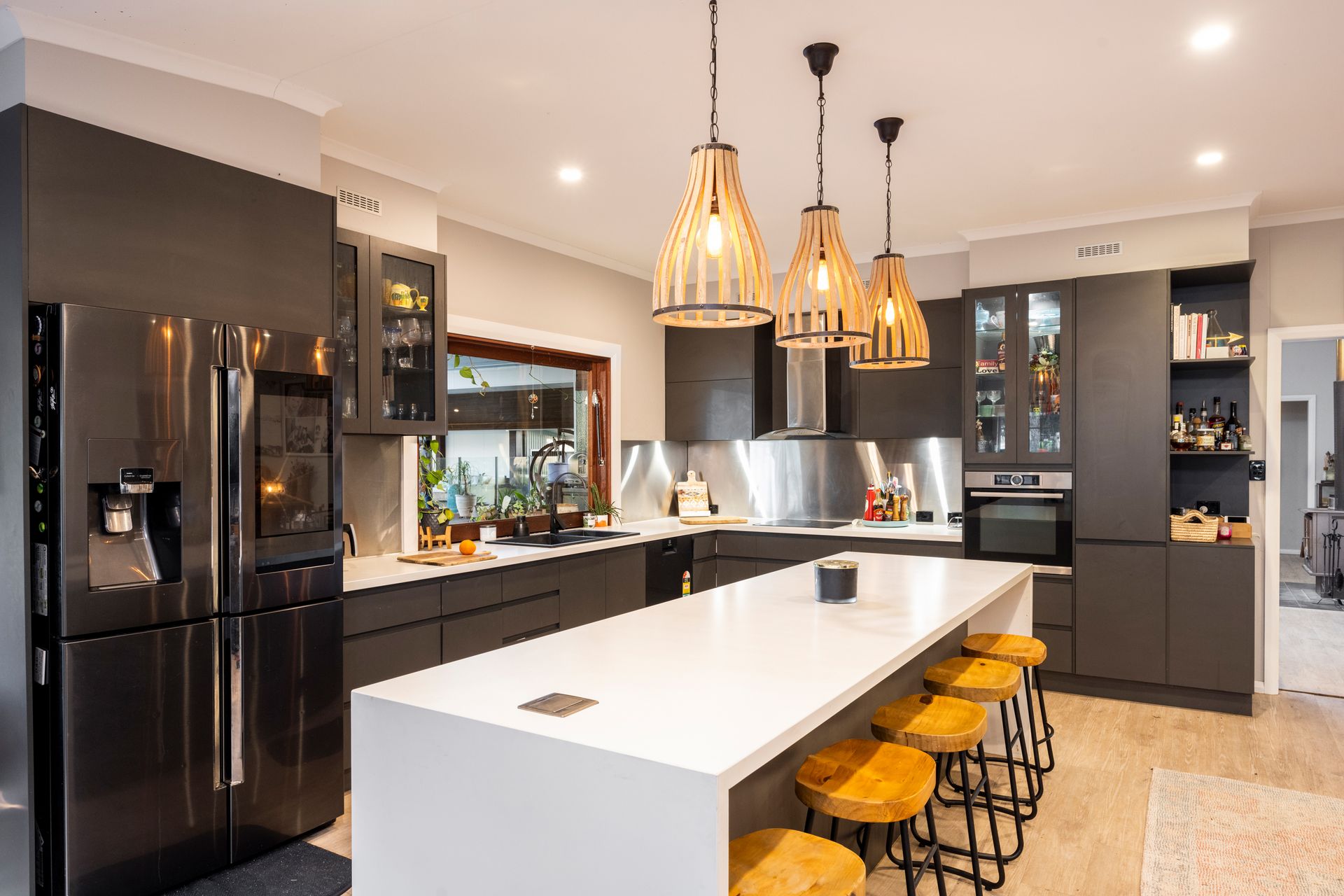 • Open plan living area, kitchen lounge and dining room (featuring Bosch cool touch 600mm induction cooktop with steam pyrolytic oven, dishwasher, extended island waterfall bench), and butlers pantry. • 2 main bathrooms and ensuite all with showers, vanity, and toilets. • Sensor lights in kitchen, hallway and pantry. • Laundry with built in storage. • Resort style outdoor entertainment area with large outdoor kitchen, dimming lights, outdoor fans, connecting to in-ground salt water pool (12m x 4.2m, Compass self cleaning sand filter). • Garage 5m x 9m, power, concrete floor, remote roller door.