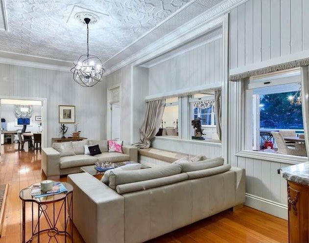 The formal lounge showcases some stunning features such as a magnificent sandstone fireplace that is fully operational, pressed metal ceiling, pretty window seat and stunning chandelier.