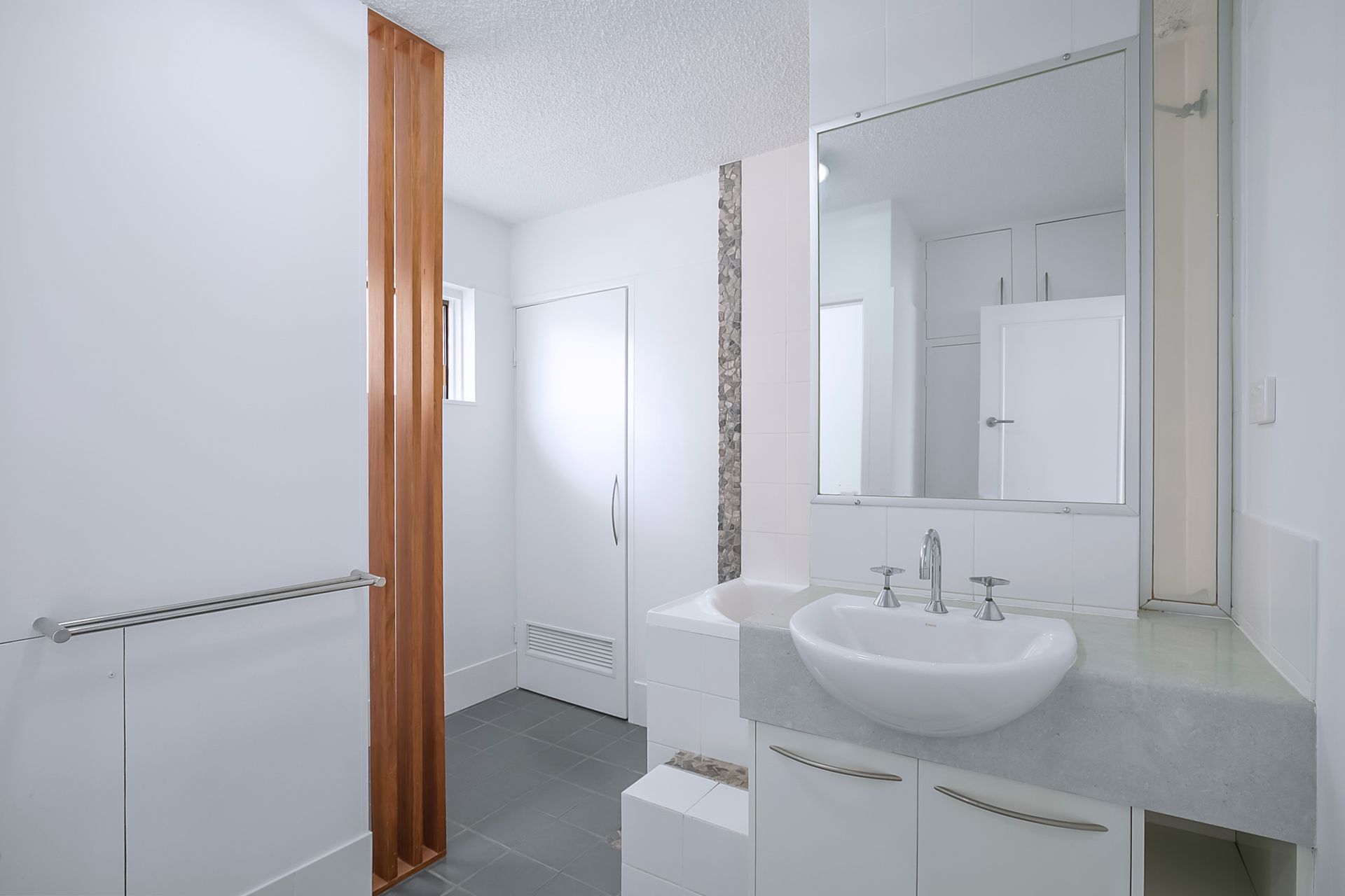 Huge air-conditioned master bedroom with built-in wardrobe, modern bathroom with separate toilet and enclosed laundry and storage.