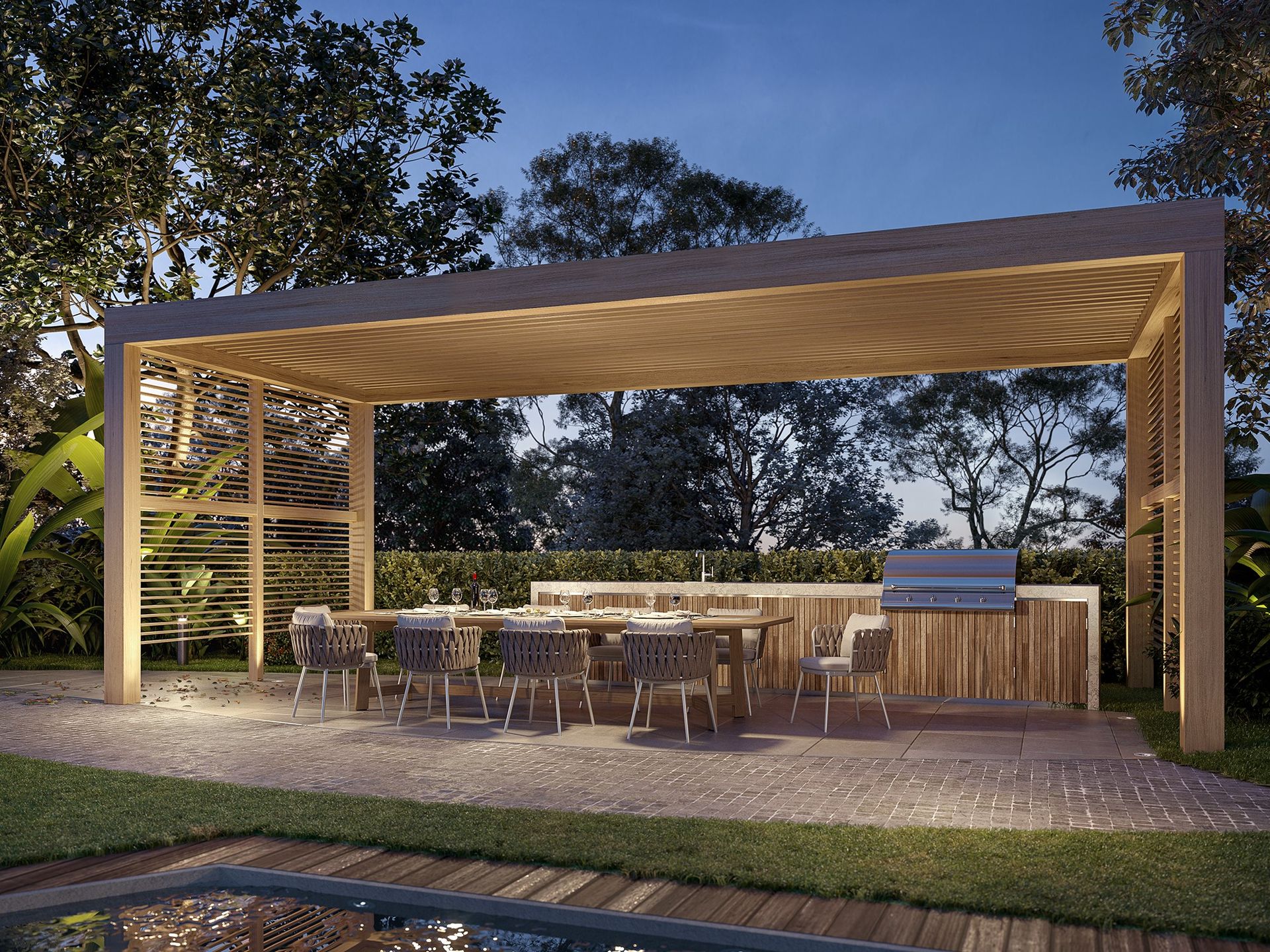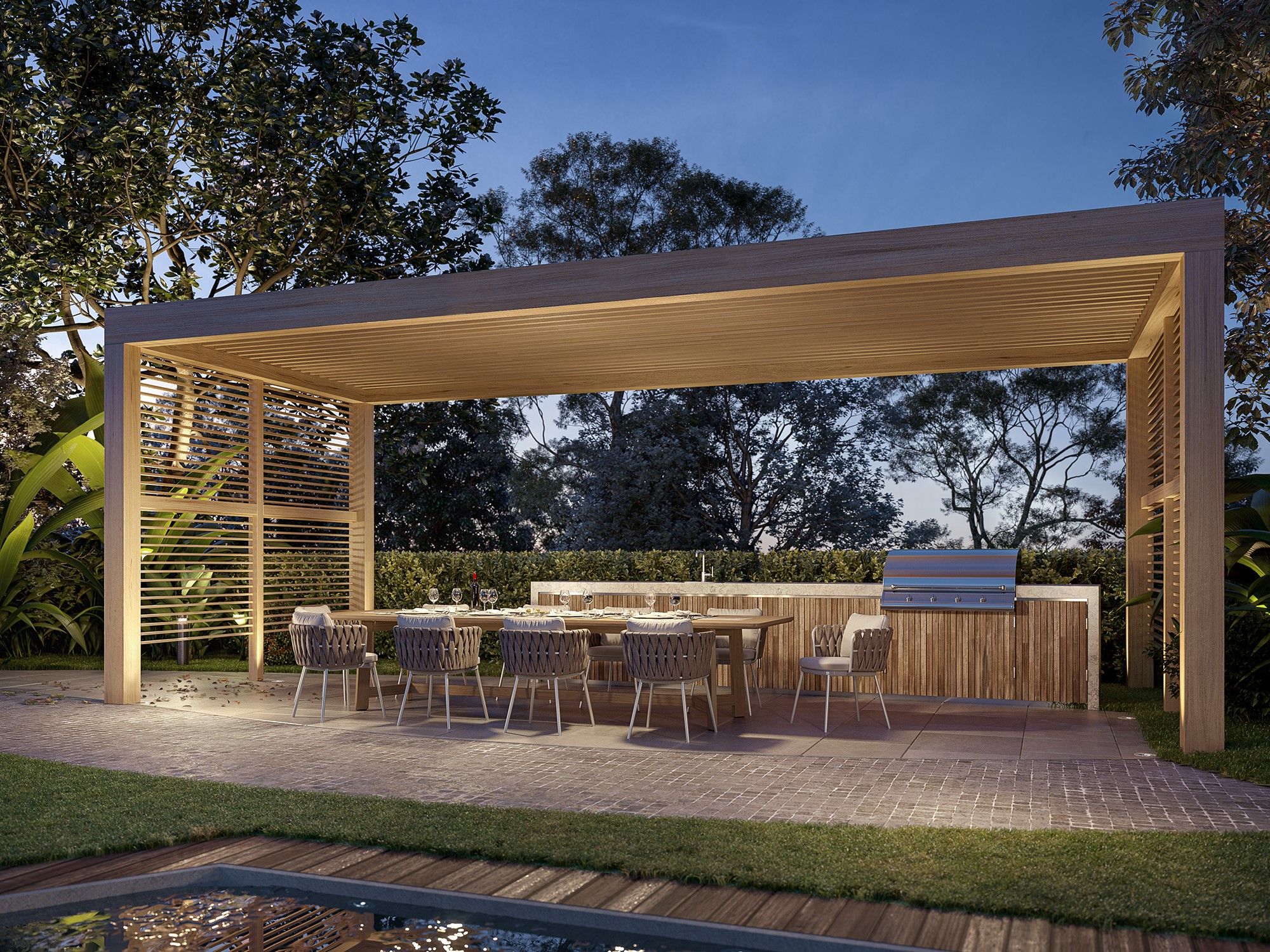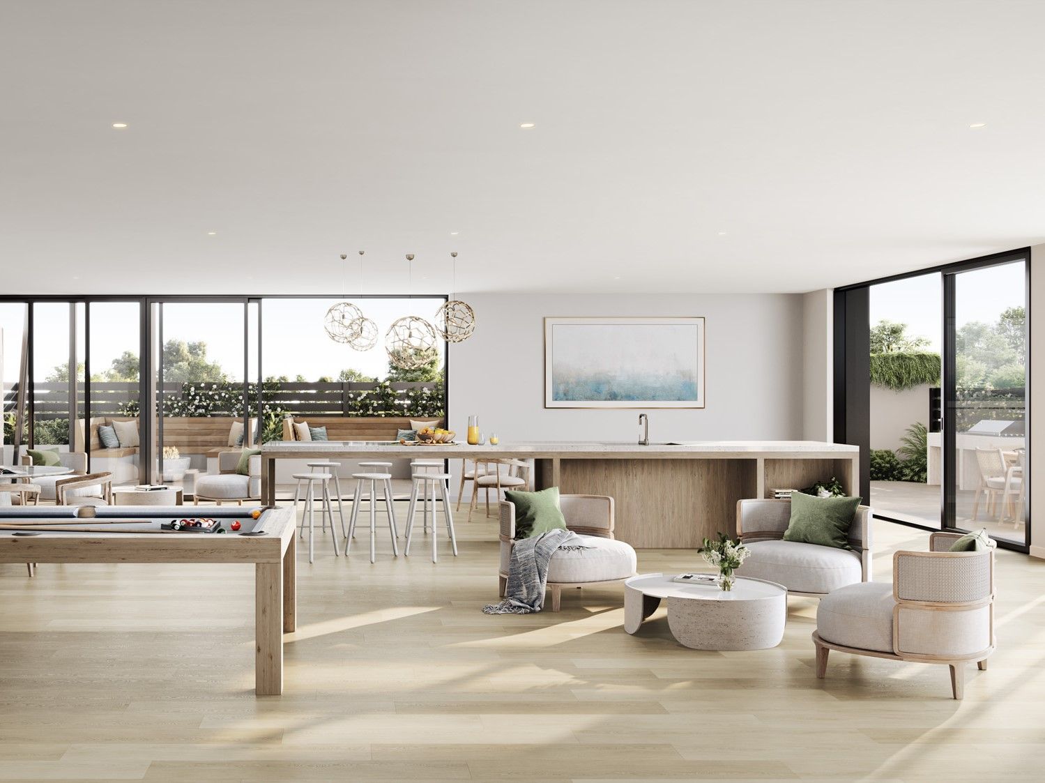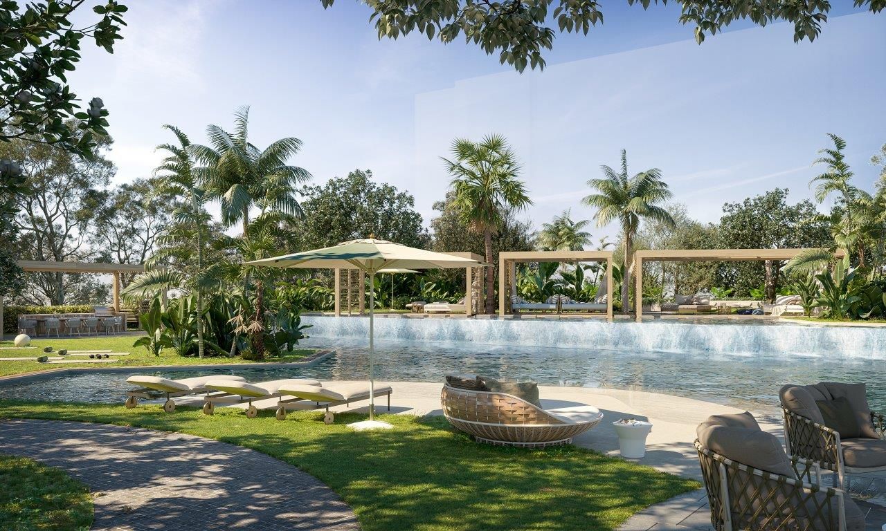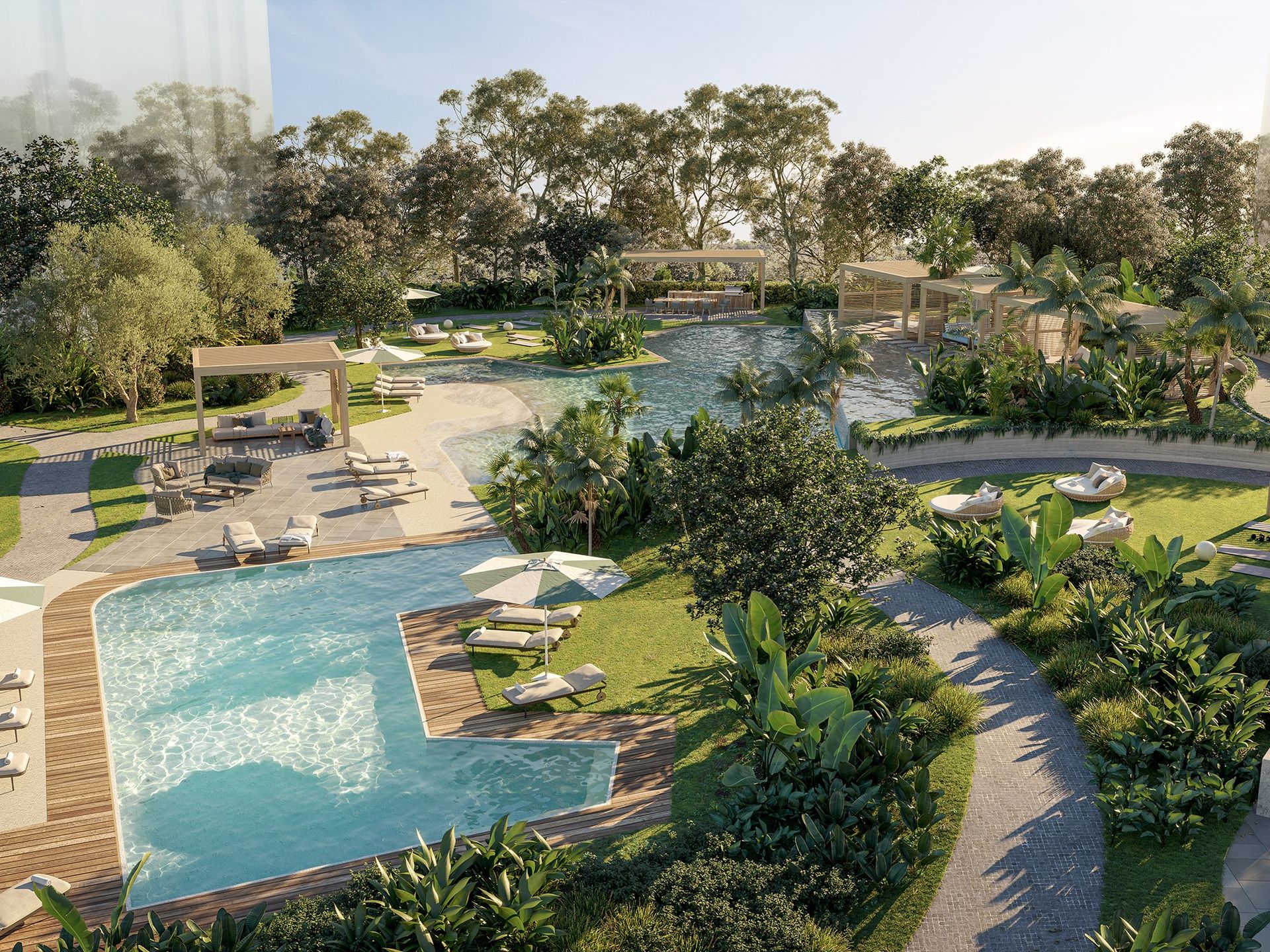 The masterplan boasts over 5,500m2 of six star amenities, including a lagoon, lap pool, outdoor kitchens and dining, waterside bungalows, reflection pool and lush tropical landscaping.