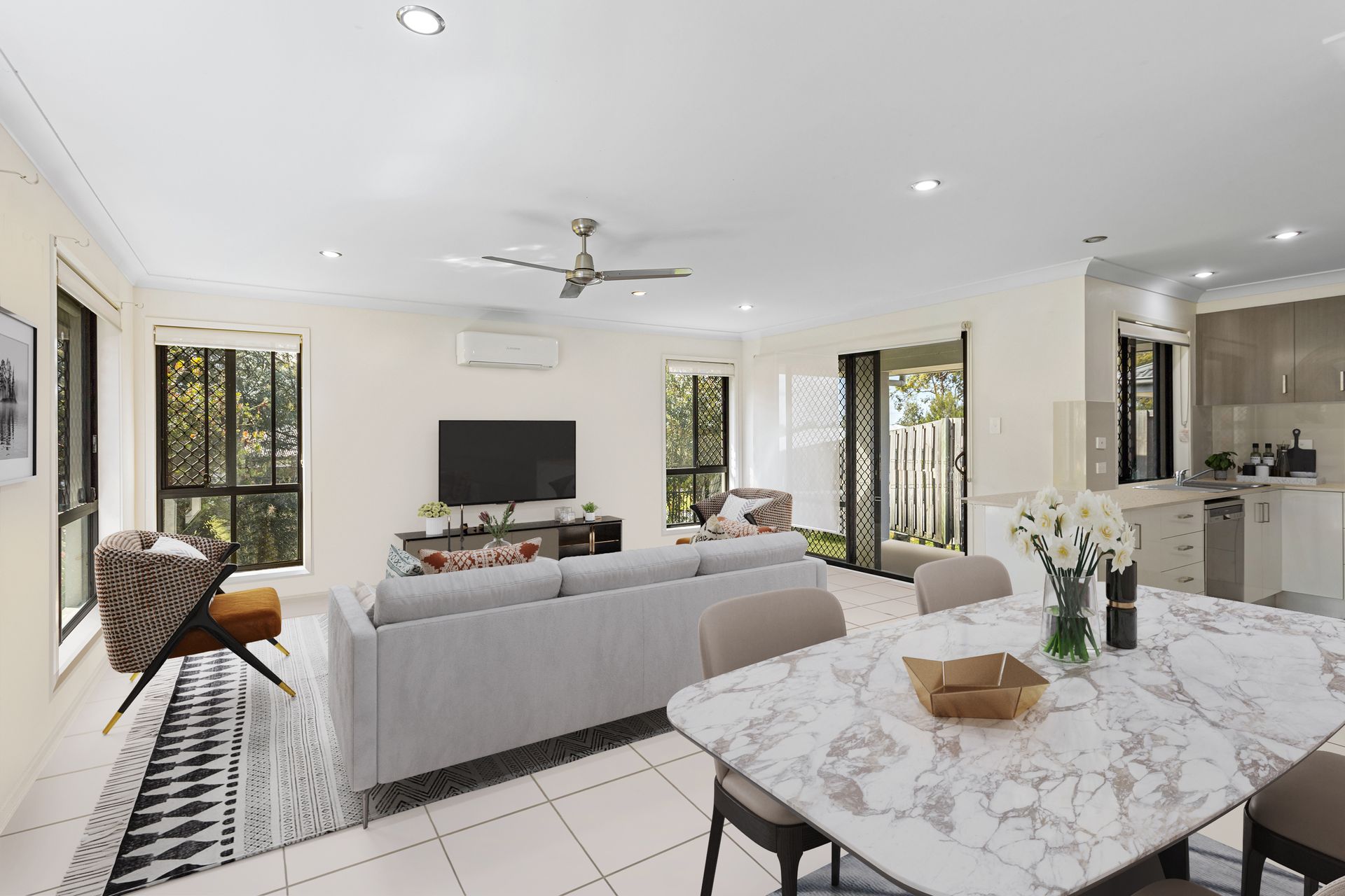 Air conditioning master bedroom, with a walk-in robe and a modern ensuite enticing extras. Three remaining bedrooms are serviced by a main bathroom in classic neutral tones, while outdoors enjoy a low maintenance yard with plenty of room to play and true side access.